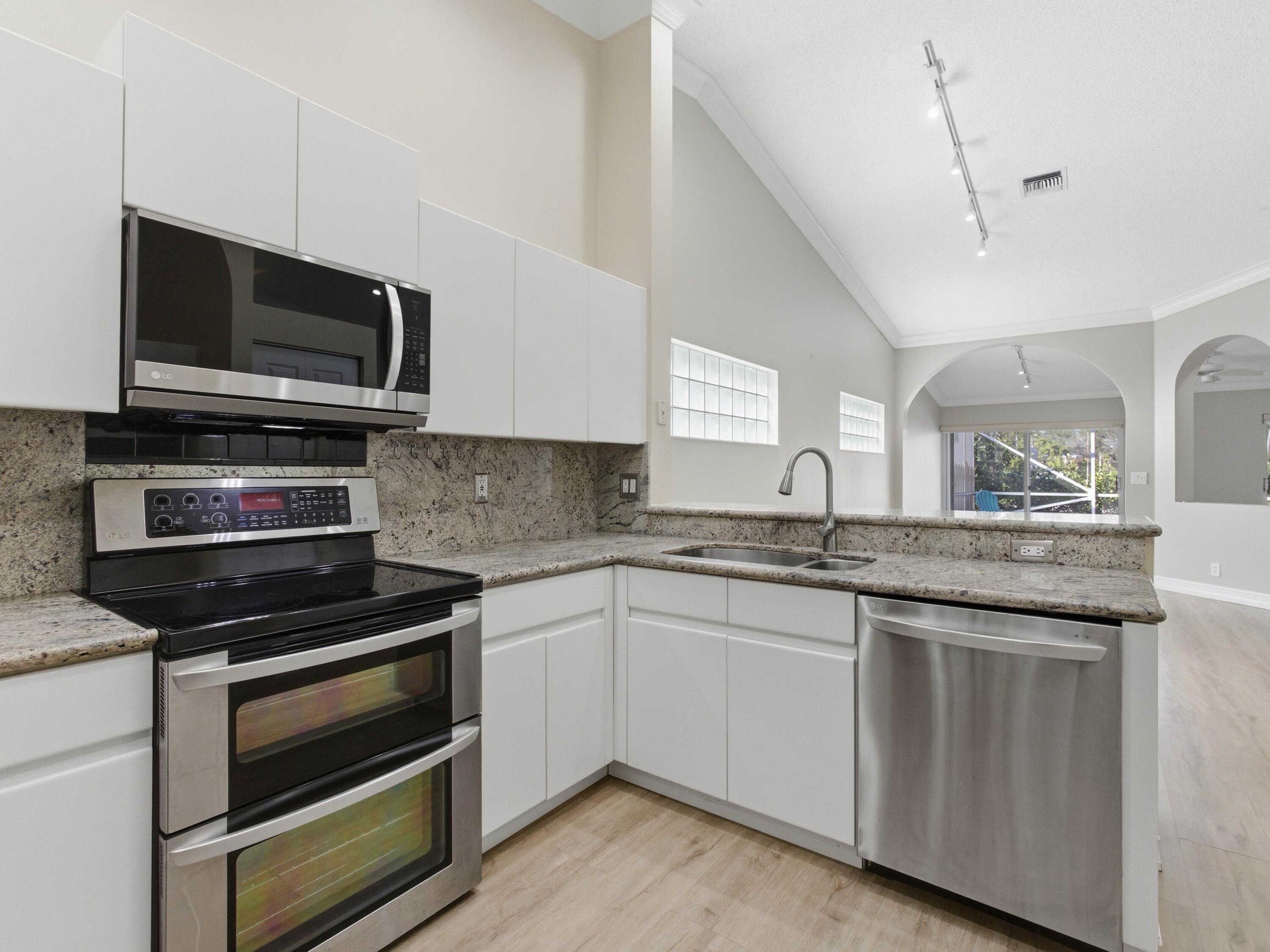 Beautiful 3-Bed, 2-Bath Home in the Sought-After active adult Community of Palm Isles! Light bright & bathed in natural light. Enjoy a private screened patio. The modern kitchen is equipped with SS appliances, granite counters, pantry, and barstool seating. Retreat to the primary bedroom, complete with a walk-in closet offering extra storage, and indulge in the upgraded en-suite bath featuring a designer dual-sink vanity. Newly updated clubhouse opening in January. Resort-style amenities include a Cafe, Indoor & outdoor Pool,Tennis, and Pickleball courts, new 600 seat theatre and more. Manned Gate. Conveniently located near dining and shopping.