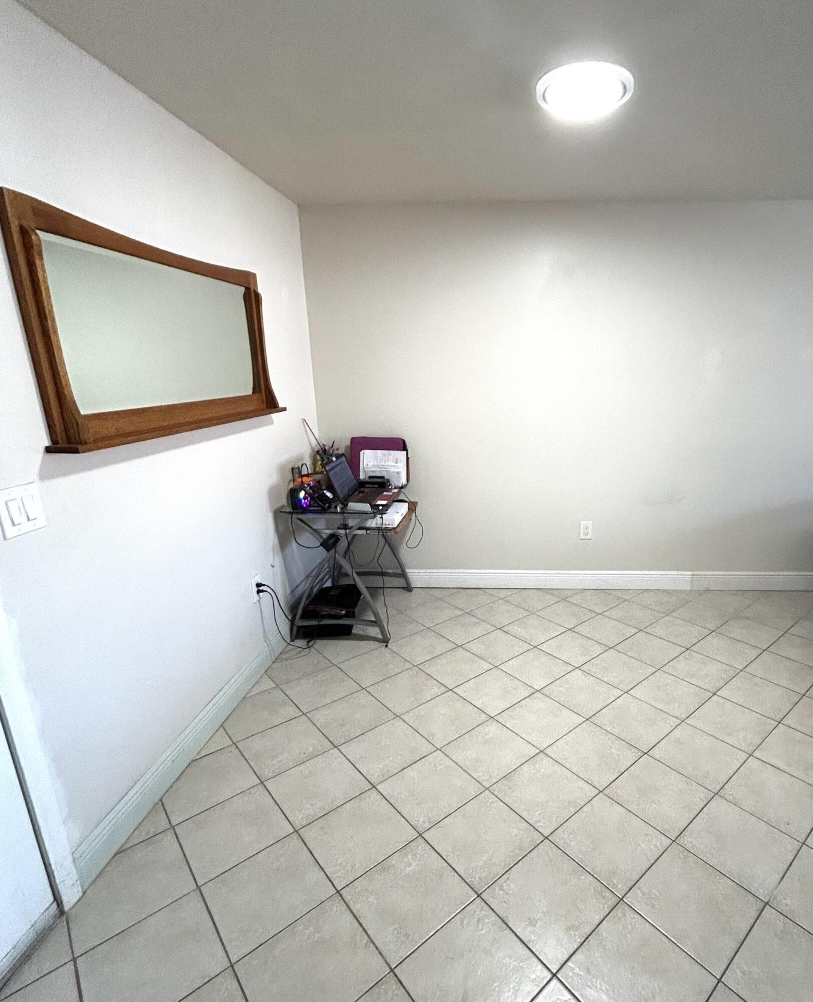 Adult 55+ community. Larger master bedroom with walk in closet. Upgraded bathroom, plus a den that could be used as a second bedroom. Tile floor throughout the whole unit. Tankless/ water heater, new A/C 2025, new roof 2025. Enjoy two pools (one heated), gym, pool tables, bowling, bocce ball, shuffleboard, minigolf, picnic area, auditorium, and courtesy bus for shopping. Basic cable and water included in HOA. Assigned parking and guest spaces. Lease ok after 2 years. The complex is located near shopping centers, restaurants and Palm Beach Airport.