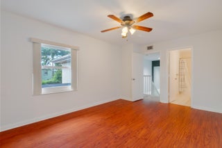 Beautifully updated townhome with IMPACT hurricane windows and sliders throughout! Enjoy private outdoor living on the screened-in, tiled patio--perfect for relaxing or entertaining. The remodeled kitchen features cherry cabinetry with a built-in pantry, granite countertops, and tile backsplash. Bright first floor offers tile flooring, a spacious living area, dining space, and a half bath with washer/dryer plus extra storage. Upstairs features laminate flooring in both bedrooms with en-suite bathrooms for added privacy. Built-in shelving in the primary walk-in closet and mirrored guest closet. Nestled among mature trees and just steps to the community pool. Stamford is a well-maintained community close to schools, shopping, dining, and parks.