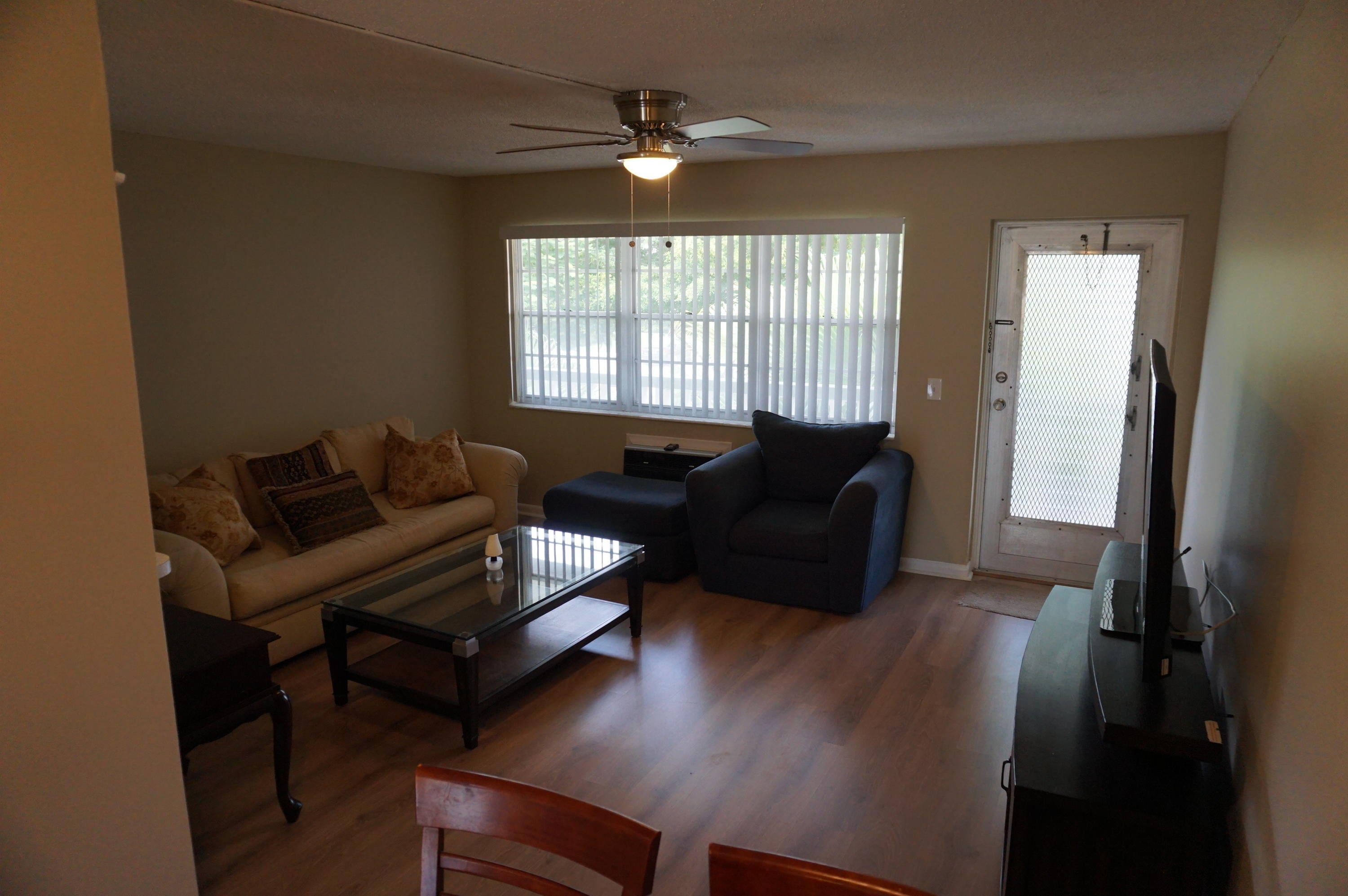 Century Village is a 55+ Community... 2nd Floor Condo 1 bedroom 1 bath. ***PARTIALLY FURNISHED or UNFURNISHED*** Laminate wood flooring, upgraded kitchen, all LED lighting, covered screened balcony, very close to Okeechobee entrance. Century Village amenities includes a 24-hour gated community with beautiful Clubhouse, theater, fitness center with on-site personal trainers, indoor mineral pool with fitness center, outdoor swimming pools, free on and off-site transportation, great fresh water fishing, Sail boating, several clubs, on-site Barber and Beauty Shop and lots of fun activities, close to shopping and dining, and the Turnpike, and so much more..