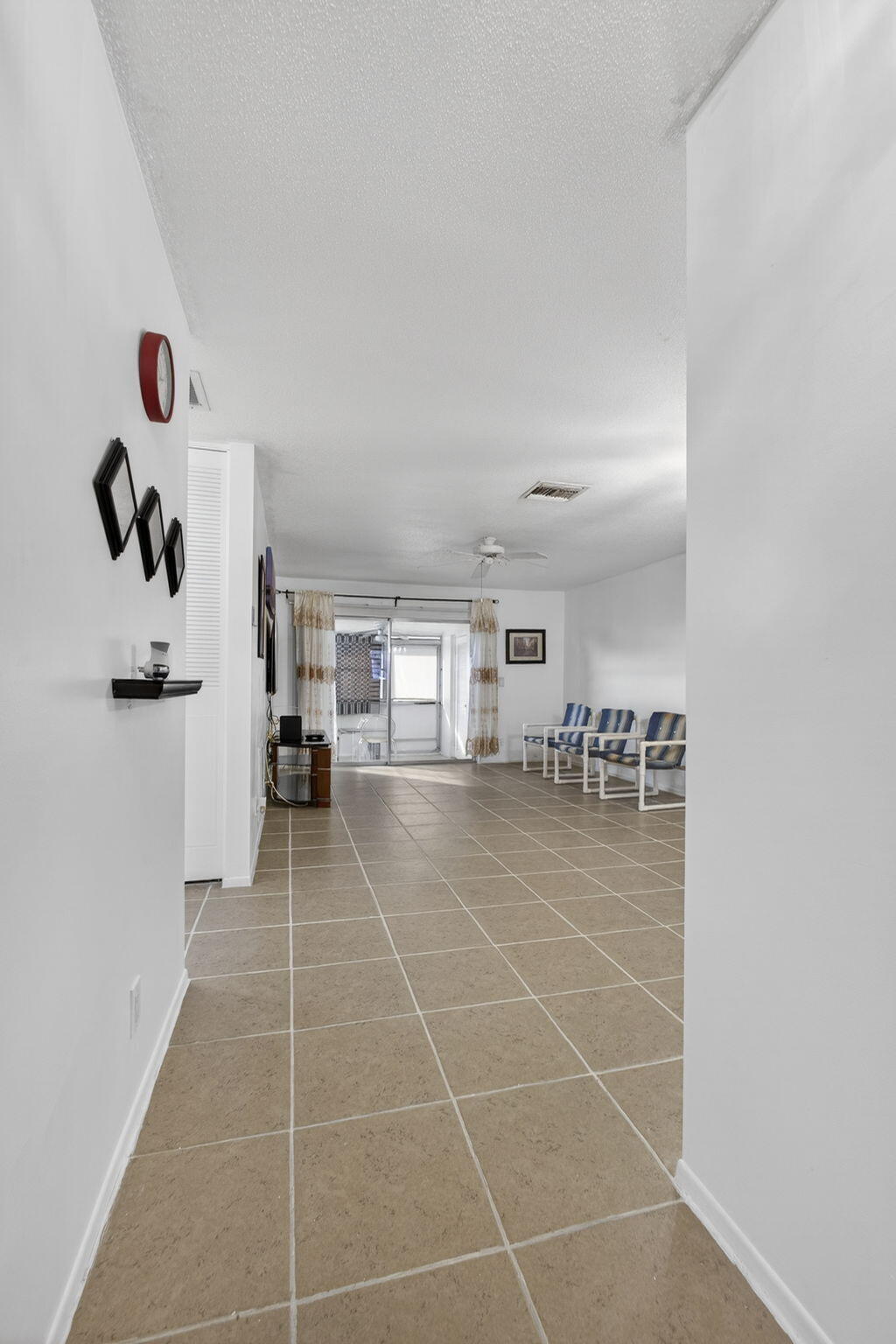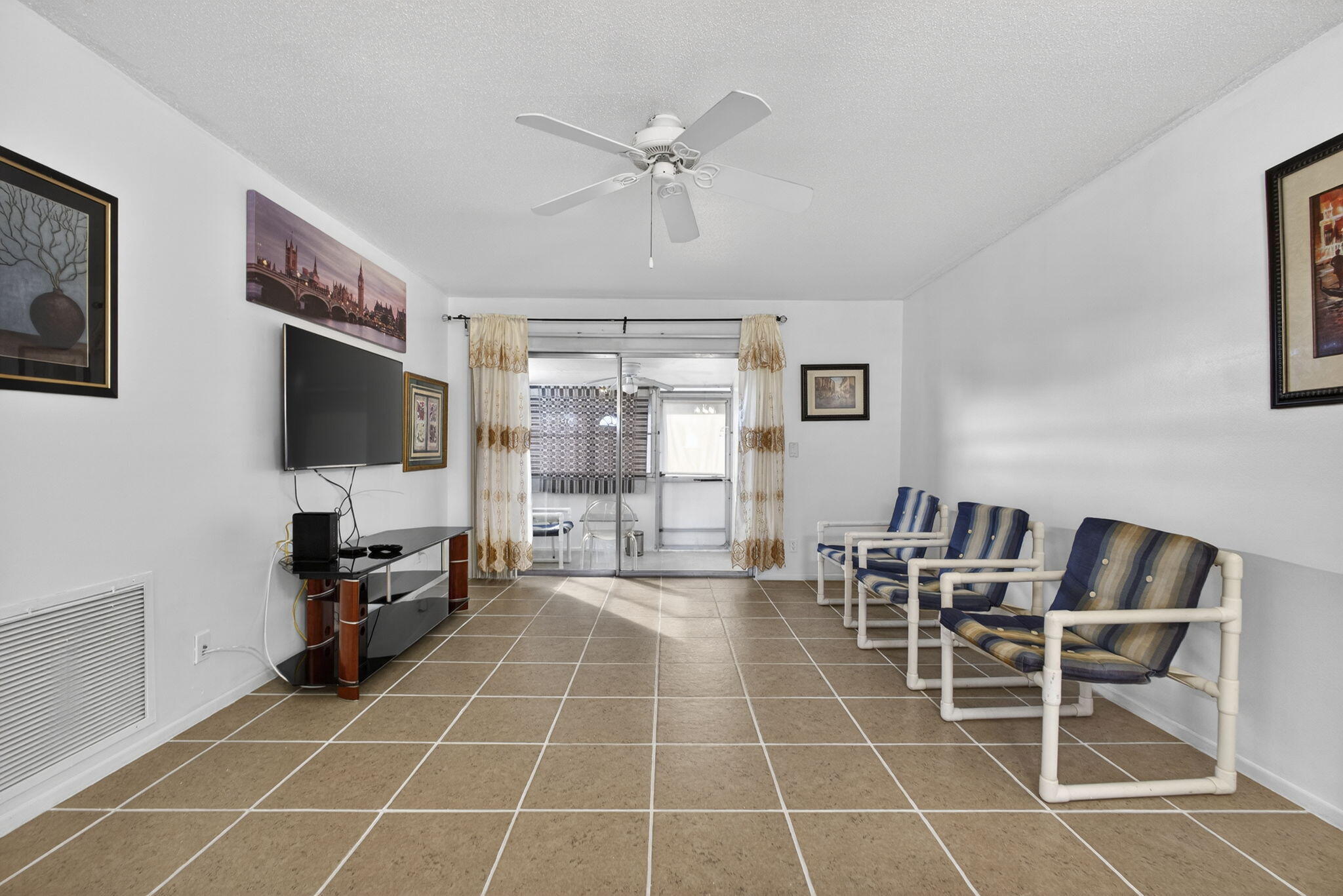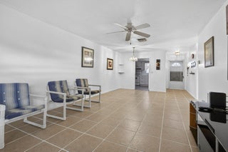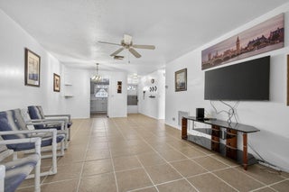 Welcome home to this inviting residence featuring tile floors & interior that enhances the open living and dining room combination--perfect for everyday living and entertaining. The partially updated kitchen offers updated lower cabinets and countertops, along with a newer LG refrigerator. The home features one full bathroom with an updated commode and a tub/shower combination. The guest bedroom includes a ceiling fan and laminate flooring, while the primary bedroom showcases classic parquet flooring. Major upgrades include a newer Ameristar air-conditioning system, a replaced water heater (2020), and an updated General Electric electrical panel, offering peace of mind. Enjoy the enclosed screened patio with a convenient storage closetm leading to a paved backyard area.