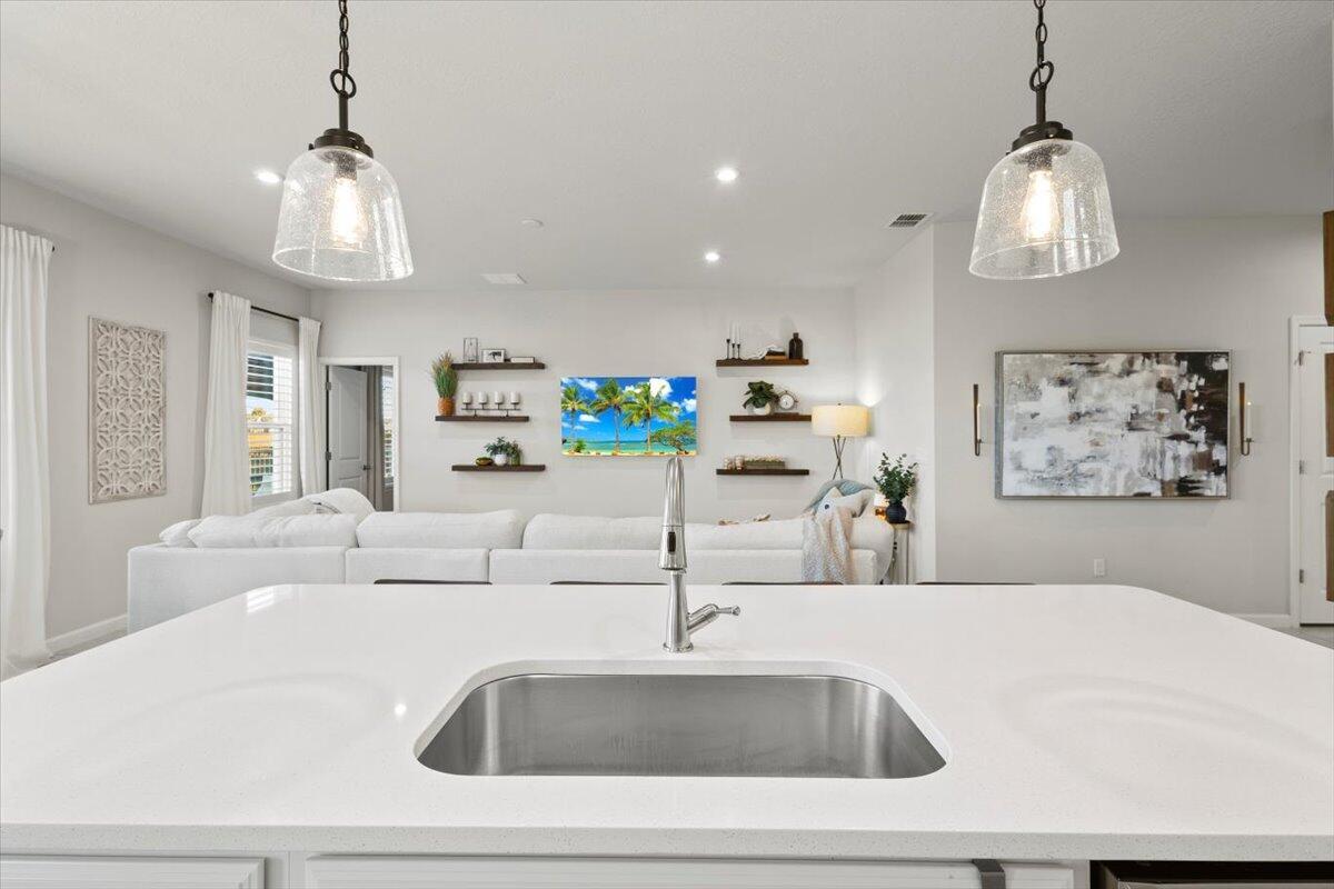 Beautiful Home shows like a MODEL at Crosstown Commons! This ''Baymont'' model built by Ryan Homes has popular open floor plan, volume ceilings, split floor plan & is exceptionally well maintained shows like a NEW HOME! Features CBS construction, 4 BR's, 2 BA's, 2 Car Garage & Hurricane Shutters. Fabulous modern kitchen includes quartz counter tops, stainless steel appliances, walk in pantry & large Island. Details include foyer entrance, tile in main areas, Plantation Shutters, drapes, floating shelves in the living room & ideal for entertaining! Lovely Master Suite offers large Master Bath dual sinks & large shower. Spacious patio with extended pavers, fenced in LARGE yard & canal in distance. Low HOA fee's include community pool, green space, cable, internet, playground.Hurricane panel shutters. Located close to shopping, schools, restaurants, hospital & Much More! Zoned for new Legacy High School and new Tradition Lakes K-8 (opening August 2026). St Lucie County High School Seniors are eligible for 2 Years at Indian River State College for Free credits with the Promise Program.