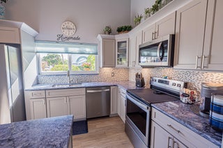 Totally updated 2BR/2BA corner-unit villa located in desirable Evergreen. This move-in-ready home features luxury laminate flooring, custom Hunter Douglas window treatments, high impact glass windows, and sliding impact glass doors leading to a covered and screened back lanai.The updated kitchen offers quartz countertops and modern finishes. The spacious primary suite includes a beautifully tiled walk-in shower. Enjoy added privacy as a corner unit along with outdoor living space ideal for relaxing or entertaining. Water, sewer, trash, full exterior maintenance included in Condo Dues. Community amenities provide two pools, community center. Convenient to St Lucie Medical Center & Walton One!