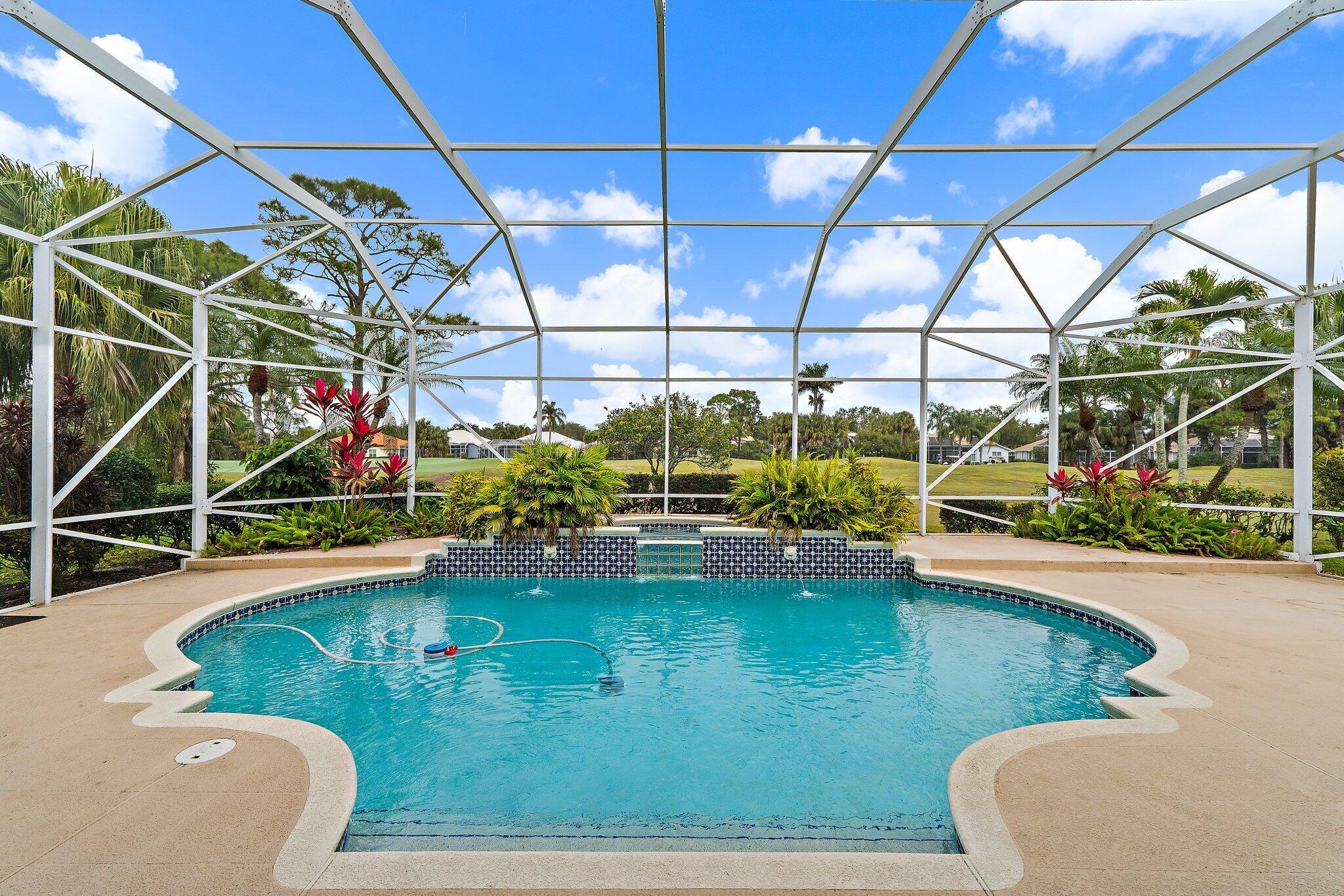 *MONARCH COUNTRY CLUB*Welcome to this fabulous single-family pool home. Located in a peaceful cul-de-sac within the 'Pinehurst Park' subdivision, and enjoying open views of the 9th fairway from the rear.This single-level residence boasts 2,629 square feet of under-air accommodation. Featuring: 3 generous bedrooms, a dedicated den/office & 3 full bathrooms.High ceilings and oversized windows bathe the home in natural light. The generous chef's kitchen is the heart of this home, equipped with an island and bar, seamlessly connecting to the dining room, family room, and living room. Perfect for entertaining.The front of the home provides a large driveway with ample parking, a 2-car garage, and a dedicated golf cart bay.Outdoor Living & Private Oasis. The rear of the property is a true sanctuary designed for year-round enjoyment. The screened enclosure houses a heated pool and raised spa, accented by tranquil waterfall features. Whether you are hosting a summer BBQ or enjoying a quiet morning coffee, the all-weather covered seating area provides the perfect vantage point for those sweeping golf course views. For your convenience, this home is equipped with accordion shutters and a 250-gallon in-ground gas tank used solely for heating the pool & spa. The HOA includes: exterior painting every 6 years, roof cleaning annually, pressure washing of the drive and pathways every 2 years, landscaping, mulch, and irrigation maintenance, basic cable & high speed internet via Comcast, and a manned, gated entrance. The Club offers 3 levels of membership, none of which are mandatory. Membership is required to use the communal facilities. Available for showings now!