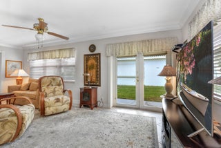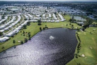 Fabulous expanded updated Regis 2Br/2Ba home Tile and Flat roof replaced 2020. All hurricane impact windows and impact French glass doors leading to back patio.. Front porch with insulated roof faces east for those gulfstream breezes. Double concrete driveway. Neutral tile thru out on the diaganol. 3 Ton A/C 2008. Both baths updated. Kitchen cabinetry replaced plus updated appliances. Recessed lighting. Knockdown textured ceilings plus crown molding. FREE 18 HOLE PAR 3 GOLF COURSE.Three clubhouses with 3 heated pools. Minutes to ocean beaches, I95, shopping, restaurants and banks. Paid up recreation lease in full. Vacant for quick close..A Must see.