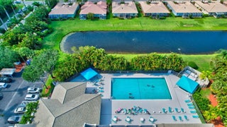 Immaculate 3 bedroom 2 bath villa in a gated community with gorgeous views of the lake. The kitchen has upgraded cabinets, stainless steel appliances and granite countertops. Enjoy nature from your private screened patio. Carefree living and fantastic amenities. Roof was installed in 2018 and air conditioner was installed in 2016. Unit is equipped with a security system. Furniture, pots and pans and wall paintings are included in the price. Clean and ready to move in!!