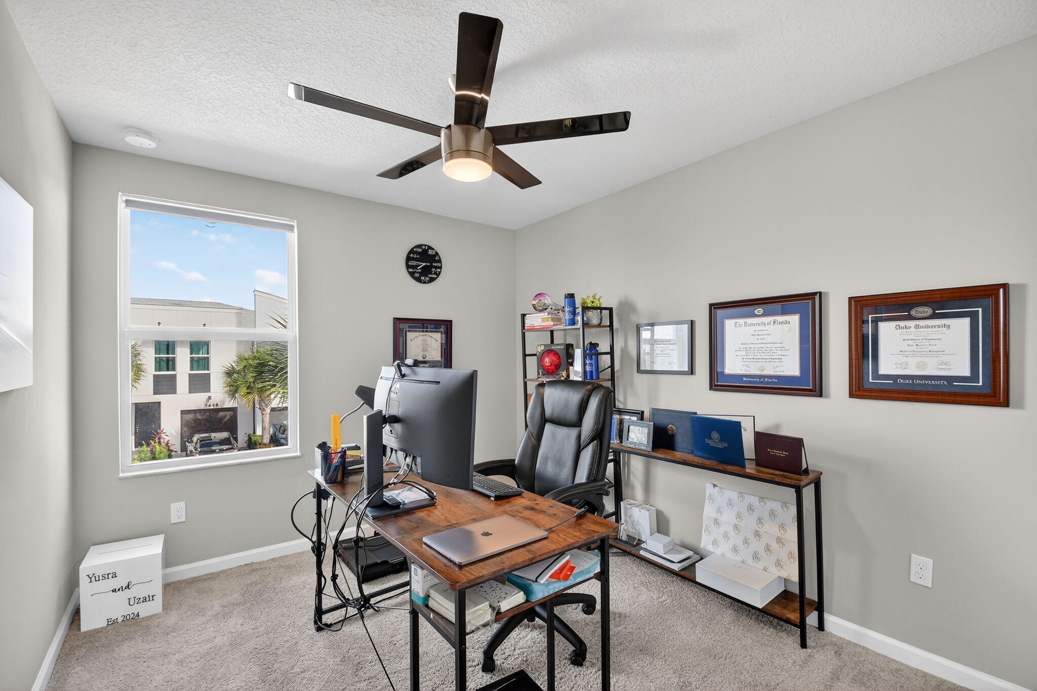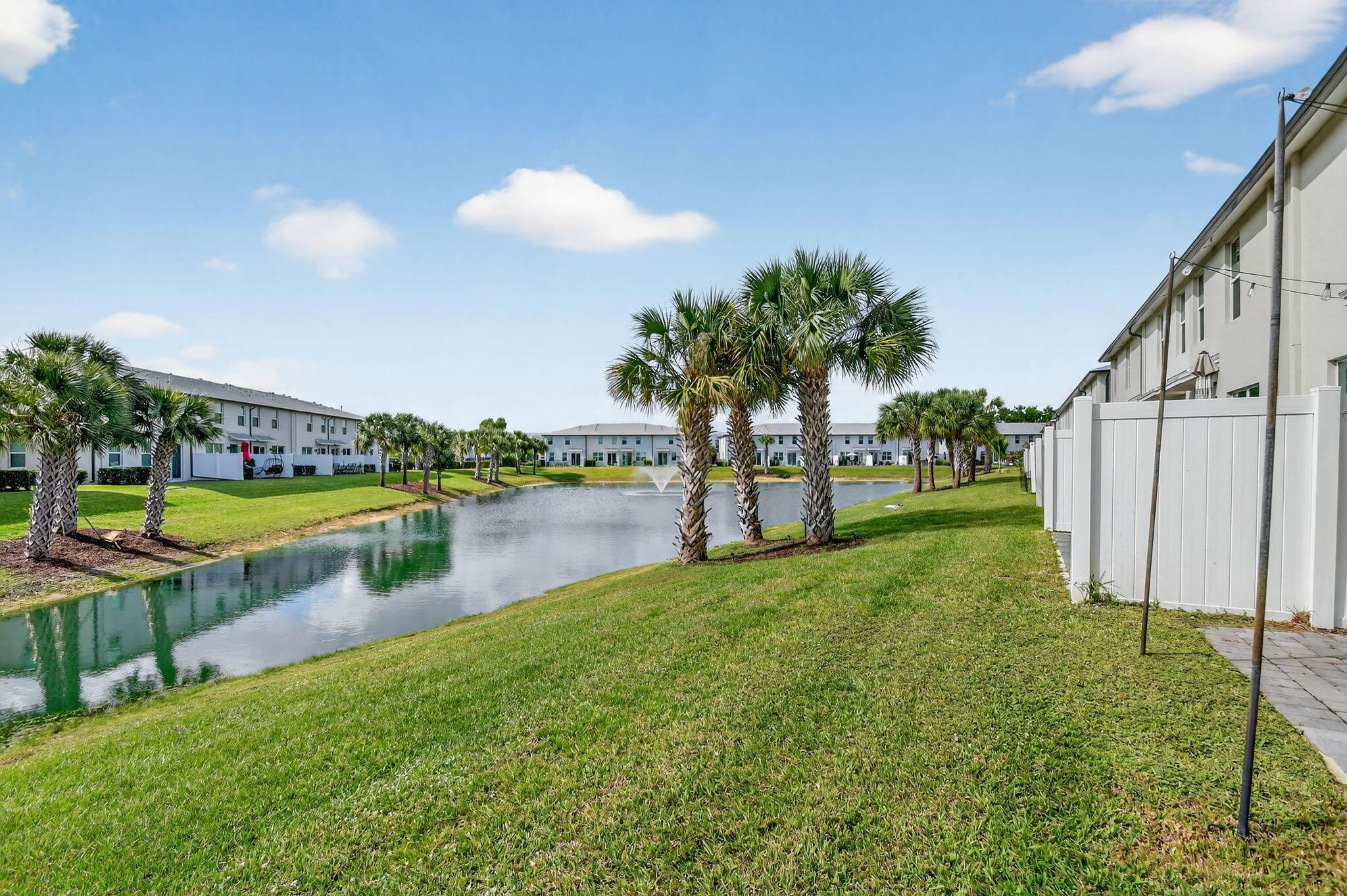 Better than new! Built in 2022, this energy efficient, Smart Home, offers 3 bedrooms, 2.5 bathrooms, CBS construction, complete Impact Glass and doors, a 1 car garage, with a 2 car driveway, Loft, and a LAKE view! The kitchen comes complete with white shaker cabinetry, granite countertops, a Whirlpool kitchen appliance package, and neutral tile. Spacious laundry room on the 2nd floor features a Samsung front load washer and dryer. Custom window treatments and lighting bring warmth to this home. Residents enjoy a sparkling pool, cabana, and tot lot. Prime location minutes from Downtown WPB, and PB Outlet mall. Welcome Home!