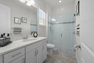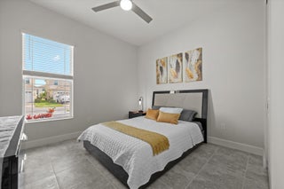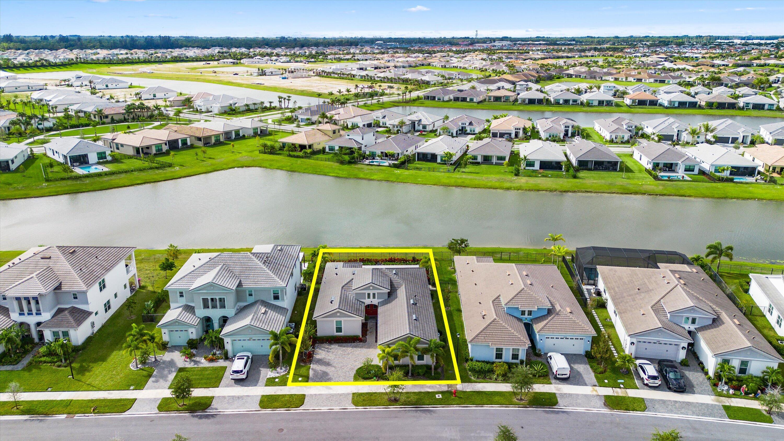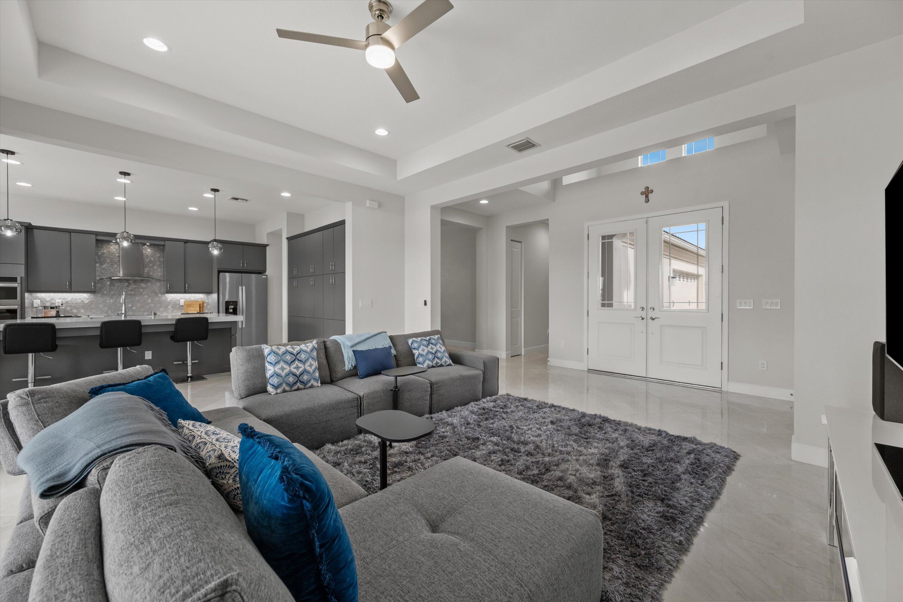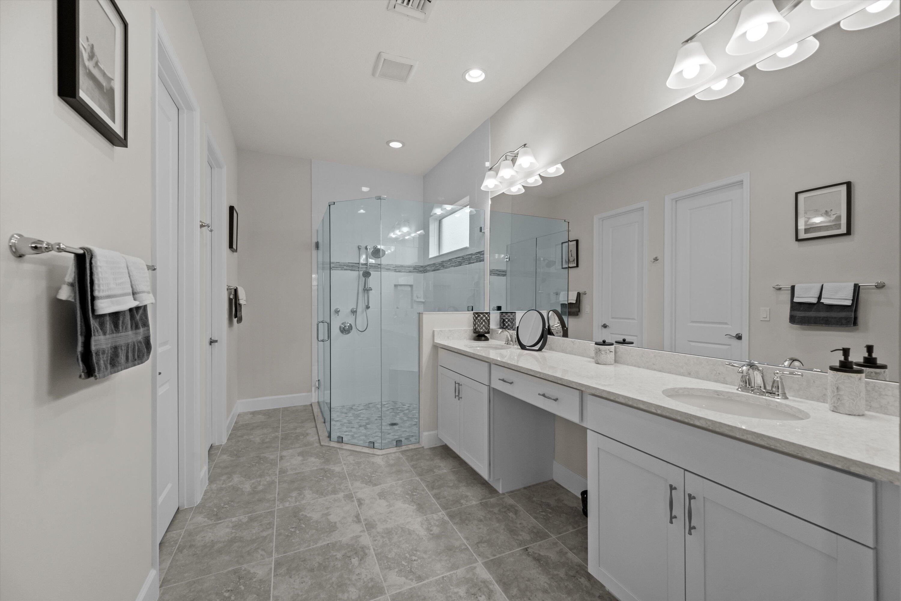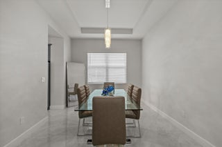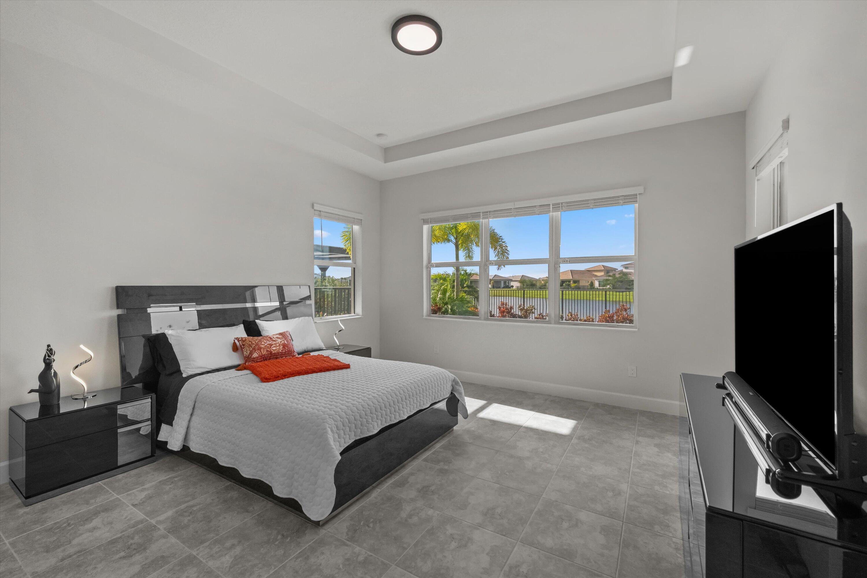 Step into luxury in this stunning Sandhill model located in The Orchards at Westlake--a beautifully designed 3-bedroom PLUS an office, 3-bath home with show-stopping curb appeal, a large driveway, 2-car garage, bold red double entry doors, and a private backyard oasis featuring a paver patio and chlorine pool--perfect for Florida living and entertaining.As you enter, you're welcomed directly into a spacious, open living area that flows effortlessly into the heart of the home bright, airy, and ideal for hosting. The main living spaces feature sleek, glossy white/gray tile flooring that enhances the home's crisp, modern feel. The chef's kitchen is truly the centerpiece, featuring gray cabinetry, sparkling quartz countertops, a statement stainless hood, built-in wall oven and microwave, and a striking gray hexagon tile backsplash. The oversized island is massive comfortably seating up to 10 and is accented by three pendant lights, making it ideal for gatherings. Enjoy stainless steel appliances, generous pantry space, and abundant storage throughout the extended kitchen layout. Just off the kitchen, the home also offers a formal dining room, perfectly positioned for easy entertaining and everyday meals. The primary suite is a private retreat with tray ceilings, tons of natural light from multiple windows, and elegant gray tile flooring. The spa-inspired primary bathroom offers dual sinks, white shaker cabinetry, white quartz countertops, and a large enclosed glass shower, all complemented by matching modern tilework. A spacious walk-in closet completes the owner's suite. Two additional bedrooms are impressively sized and offer excellent storage with walk-in closets. One bedroom is an ensuite, and both secondary bathrooms feature glass-enclosed showers with beautiful hexagon shower flooring, crisp white wall tile, and white shaker vanities creating a clean, high-end finish throughout. A dedicated den provides the perfect flex space for a home office, playroom, or lounge. You'll also love the large laundry room with plenty of room for storage, conveniently located near the 2-car garage. Step outside through bright sliding glass doors to enjoy your paver patio and refreshing chlorine pool, all set against a beautiful fenced backdrop for added privacy and relaxation. Located in the sought-after Orchards community of Westlake, this home blends modern finishes, functional space, and resort-style outdoor living ready to impress from the moment you arrive.