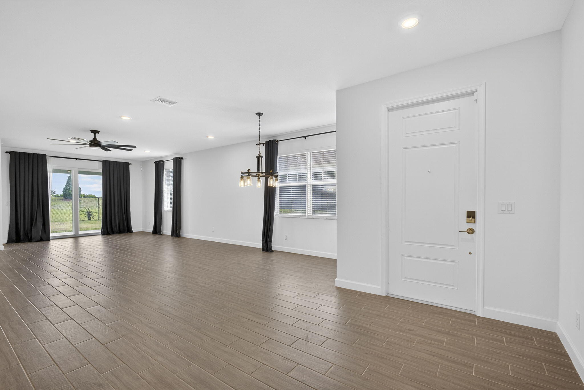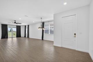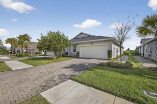 Modern villa with upgraded wood-like tile flooring, premium upgraded appliance package, and premium lot backing to green space. Arden resort community has high-end amenities and low HOA fees. Built in 2023 this 3 bedroom duplex-style villa with 2-car garage has full impact windows, quartz countertops in the kitchen with tile backsplash, natural gas, and a covered patio with yard space. Seller added Ring cameras to the front and side of the home along with an ADT alarm system. Top-rated A+ school district. Enjoy access to Arden's unique farm-to-table lifestyle within a 1,200-acre master-planned neighborhood featuring 20 miles of trails and lakes, a fitness center, tennis and pickleball courts, soccer field, basketball and volleyball courts, boat launch, & resort-style pools with clubhouse.