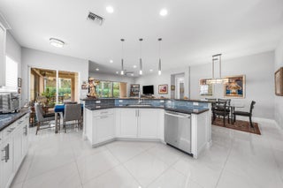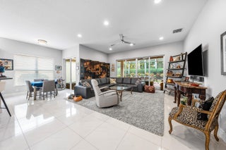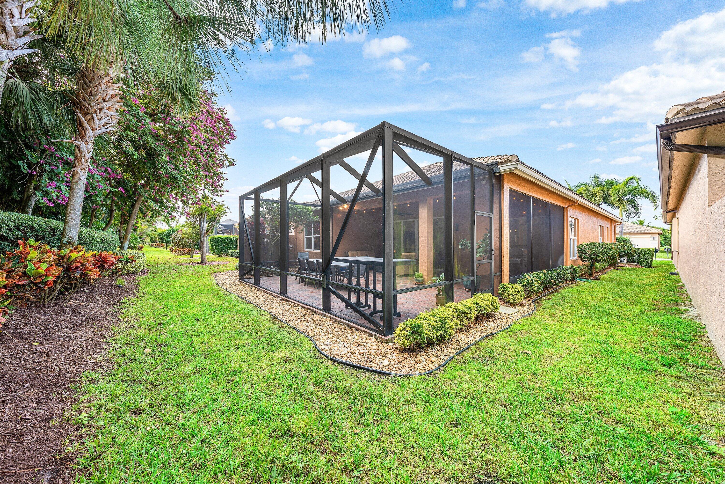 Lushly landscaped Bimini model on private lot. The home (3BR+den, 3BA), with an open concept plan, features impact windows, widened driveway & walkway, new A/C, new garage door, OX floor & EV charging station in garage, 24'' porcelain floors, designer window treatments & light fixtures, LED hi-hats, fans, built-in closets & cabinetry, custom built-ins, new locks, upgraded baths and more! The gourmet kitchen has white wood cabinets, granite countertops, glass tile backsplash, hot water dispenser, new dishwasher & faucet & all the bells & whistles! Extended snack bar, breakfast nook & dining room. Large great room. Luxurious primary suite. Laundry room w/new LG washer & dryer. You'll love the extended wraparound patio with covered area, lights, fan and huge patio with ''birdcage'' screen.Valencia Cove is a premier 55+ lifestyle community featuring a spectacular 39,000 square-foot clubhouse and 10 acre outdoor recreational facility. Endless activities and opportunities for fun abound - there are activities, trips, shows, and clubs of all types. The clubhouse features an expansive foyer and lobby, grand ballroom with raised stage and dance floor, four spacious card rooms, Cafe with indoor/outdoor seating, Arts and crafts room with kiln, Internet/Billiards room, Office, Catering kitchen with separate demonstration cooking studio, Yoga & exercise studio with ping pong, fully equipped fitness center and men's and women's locker rooms with steam rooms, massage room and showers. There are four pools - a beautiful Resort-style pool and Shade Pavilions, Lap pool with Swimmers' Lap Lanes, Resistance walking pool, Grandchildren's wading pool, and an Outdoor whirlpool spa. There are eight har-tru tennis courts with shade pavilions and lighting for night play, tennis pro shop, tennis pro, league play, six pickleball courts, pickleball pro, league play, 2 bocce courts, league play, half-court basketball and walking/jogging/biking paths throughout and just outside the community. Valencia Cove is conveniently located near shopping, restaurants, houses of worship and major highways!