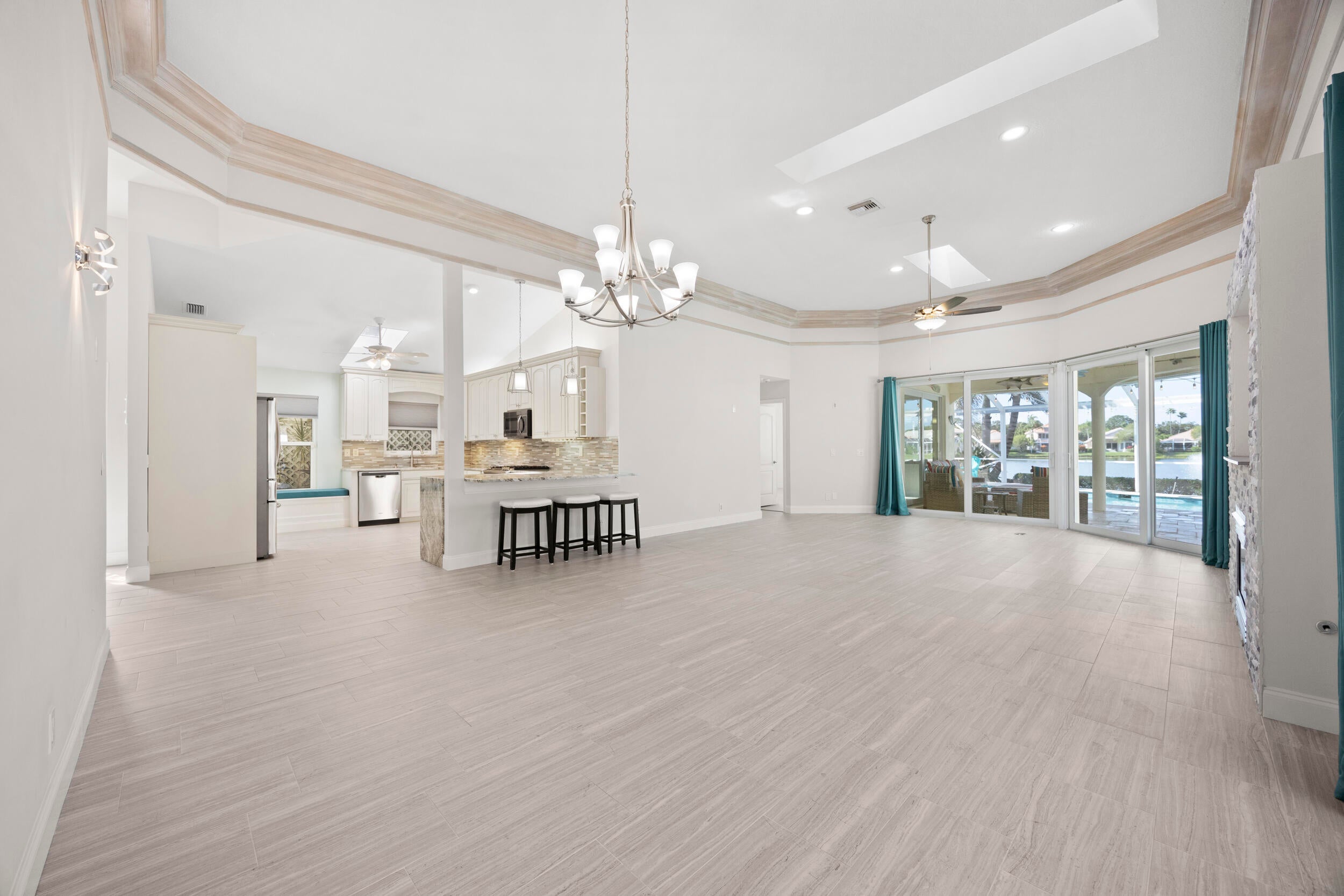 Motivated Seller! Wake up to breathtaking shimmering lake views, glowing sunsets, and the peaceful rhythm of nature in this beautifully maintained single-story 3-bedroom home in Eagleton Lakes at PGA National. Perfectly positioned to capture expansive water vistas, this residence offers an exceptional blend of elegance, comfort, and relaxed Florida living.The bright, airy interior is filled with natural light from the desirable northwest exposure, highlighting soaring ceilings, custom crown molding, and a striking stacked-stone fireplace with built-in TV that serves as a warm and inviting focal point. READ MORE..The open-concept kitchen features granite countertops, stainless steel appliances, and seamless flow into the living and dining areas are ideal for both everyday living and entertaining. The true showpiece is the backyard oasis. Sweeping lake views framed by a stunning fountain and abundant wildlife create a tranquil, ever-changing backdrop. A covered and screened lanai overlooks an expansive travertine deck, heated pool, and spa--perfect for peaceful mornings, sun-filled afternoons, and unforgettable evenings under the stars. Impact glass and natural gas enhance comfort, efficiency, and peace of mind. Located within Eagleton, a private 24/7 guard-gated enclave, residents have the opportunity to enjoy optional membership to PGA National's world-class golf, tennis, resort-style amenities, and vibrant social scene. Ideally situated near beaches, shopping, and dining, this property offers the ultimate balance of luxury, privacy, and convenience in one of Palm Beach County's most desirable communities.