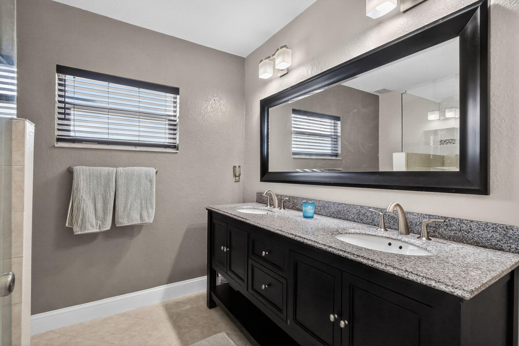 Outstanding Boynton Beach beauty with all the rings and bells! Come see this gorgeous 3/2 pool, waterfront home offering the best of Fl living at an affordable price. Wonderful open floorplan with volume ceilings, loads of upgrades including newer bathrooms, kitchen updates and so much more! Come see the amazing sunset views from your extended travertine patio with splash pool and gorgeous water views. Home has new electric panel in 2022, newer windows with full panel shutters, pool from 2013 and a fully fenced yard ready for sports and play! Your 40-year tile roof only halfway thru life and large 2 car garage makes this effortless home the easy choice. The Florida lifestyle you've been looking for under 600K. Fountains sits midpoint between 95 and Turnpike for easy commute to W Palmor Ft Lauderdale. Just minutes from stores, restaurants, shopping and theater, this location has it all!