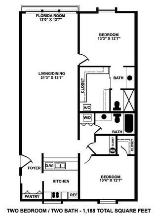 2 Beds, 2 Bath, 1,188 SqFt