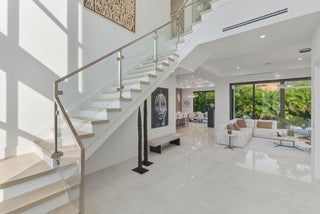 This extraordinary two-story estate is purpose-built for those who live life by the Boca lifestyle. Perfectly situated in the heart of Mizner Park, you're just a 5-minute drive to the iconic Boca Raton Resort & Club, and the beaches ''putting the best of South Florida at your fingertips. Inside, the vibe is effortlessly elevated. The expansive open-concept layout blends living, dining, and kitchen spaces into one seamless, sunlit canvas perfect for casual lounging or lively entertaining.Adjacent to the main gathering space, a sleek clubroom invites cocktails, game nights, or simply a quiet moment to unwind. The main floor hosts a private guest suite (or home office), offering flexibility and seclusion. When it's time to head upstairs, the elevator makes iteasy. There you'll find a second living area that opens to a private balcony with panoramic views, plus four additional ensuite bedrooms - each with oversized, custom closets. The primary suite is the showstopper; a serene retreat with dual water closets, a spa-sized shower, and generous dressing areas fit for both function and fashion. Outdoors, the luxury continues: a sparkling pool, relaxing spa, and accent lighting. Home is complete with a whole home generator, pool with salt system and heater, Wolf & Subzero appliances, summer kitchen, all custom closets, and much more.
