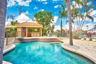 Experience unparalleled elegance in the heart of Boca Grove! This stunning waterfront mansion is ideally located within walking distance of Powerline Rd., shopping, dining, & offers easy access to I-95 & the Turnpike. Spanning three stories, this home showcases exquisite design, a three-car garage, & sits on a double lot with single lot HOA dues. Features include 5 bedrooms, 8 full and 2 half baths, indoor and poolside bars, a breakfast room, formal dining, and a spacious living area with stunning lake, golf course, & pool views. Additional highlights include a Florida sitting room, billiard room, & media room. The primary suite boasts a sitting area, custom built-ins, two marble showers, and dual walk-in closets. Perfect for luxury living & entertaining, this home has it all!