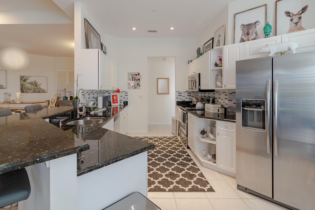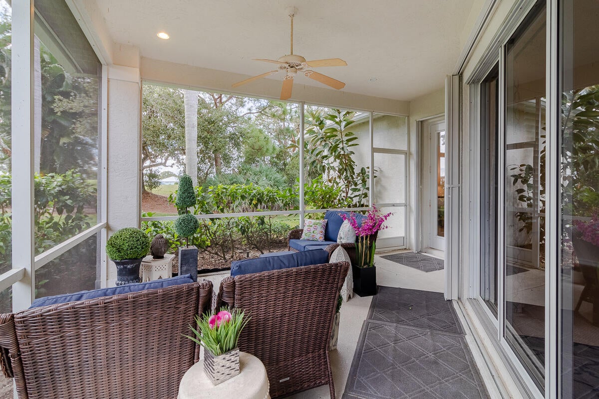 Stylish new listing in Monarch Country Club is flooded w/natural light & offers a crisp, clean palette. Features include an open floor plan, 2 beds plus den or 3rd bed, white cabinetry, granite tops, s/s appliances, upgraded lighting fixtures & fans, handicap rails in baths & showers, accordion storm shutters & large screened porch w/fantastic views of a pond & 17th fairway. There's a 2-car garage plus golf cart door. The main bath has a tub with a separate shower & generously sized walk-in closets. Monarch Country Club memberships are avail but not mandatory. The club offers tennis, golf, swimming, dining, and many planned social events. A terrific in-town location features easy access to local parks, marinas, world-class fishing, shopping & dining, I-95 & FL Turnpike, Martin ''A'' schoo