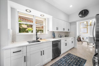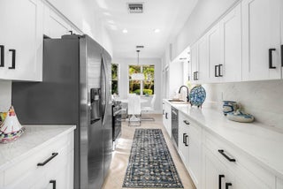 Located in Broken Sound's beautiful village of Timbermill, this lavish 3-bedroom, 2-bath townhome blends contemporary design with refined luxury. Sophistication greets you upon entering the private gate, revealing smooth walls and soaring vaulted ceilings. The modern kitchen showcases quartz countertops, soft-close cabinetry and drawers, and a sunlit breakfast area. The luxurious primary suite offers a generous walk-in closet and a spa-inspired bath with marble tile, floating vanity, frameless shower, and elegant gold finishes. A professionally designed third bedroom has been transformed into the ultimate office, featuring custom cabinetry and a mother-of-pearl backsplash. Enjoy breathtaking sunrises from the east-facing backyard, beautifully finished with espalier lattice, porcelain tile
