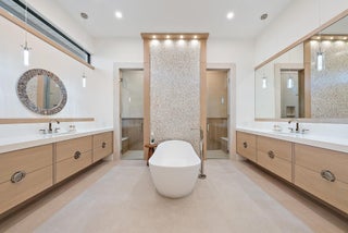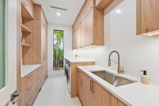 Welcome to 247 Seville Road, a stunning 2025 modern-coastal residence with subtle Balinese influence, meticulously crafted by Spyglass Development. Set on an oversized 11,285 SF lot in West Palm Beach's highly coveted SoSo neighborhood, this newly built estate blends design, craftsmanship, & lifestyle into a refined coastal retreat. Offering 6,378 total square feet with 5,112 SF of living space, the main residence features 4 bedrooms, an office, 4.5 baths, a double garage, & an elevator across 4,785 SF. A 327 SF cabana/flex suite with full bath, outdoor shower, & Sub-Zero under-counter drawers serves as a 5th bedroom, guest suite, second office, or fitness studio.A dramatic porcelain-travertine façade & 10-ft entry door introduce a beautifully executed interior with 48x48 Italian porcelain floors, a floating white-oak & glass staircase, rift-cut white oak cabinetry, fluted wall panels, & 9-ft interior doors. The chef's kitchen showcases Nika Quartzite counters, a 12x5 island, Sub-Zero refrigeration towers, a 48" Wolf 8-burner range, walk-in pantry, & a custom rift-cut oak bar with Sub-Zero wine tower. While the photos convey the architecture and design, the home's true atmosphere is even more compelling in person-- warm natural light, layered textures, and beautifully balanced finishes create a richer, more inviting experience than images alone can capture. The first-floor primary suite includes oak flooring, dual custom closets, LED lighting, & a spa-inspired bath with dual 16-ft showers, soaking tub, & dual water closets. A refined office with oak flooring & American Black Walnut cabinetry completes the main level. Upstairs offers a loft with built-ins & Sub-Zero beverage center, a secondary laundry room, oak flooring, & three en-suite bedrooms, including a VIP suite, all with imported Spanish porcelain baths. 12-foot wide bypass stackable doors open to a resort-style outdoor living retreat with a travertine fireplace wall, summer kitchen w/ grill, sink, refrigerator, cypress cabinetry, remote-controlled screens, designer lighting, & an aluminum tongue-and-groove ceiling in a wood-look finish. The 37x16 saltwater pool, sun shelf, & 9x9 spa create a private oasis surrounded by tropical landscaping. Additional features include engineered site drainage, a generator, concrete subfloors for sound/structural stability, EV pre-wire, & an air-conditioned double garage. Located on a quiet, tree-lined street east of Olive Avenue in SoSo, this property is moments from the Intracoastal Waterway, Summa beach, Flagler Drive bike path, world-class marinas, golf, dining, & the amenities of Palm Beach island. Downtown West Palm Beach, PBI airport, & Worth Avenue are all within easy reach, making 247 Seville Road an exceptional opportunity to own a stunning modern-coastal home in one of the area's most desirable neighborhoods. Note: FPL is currently working on undergrounding electrical power lines in the neighborhood. All measurements and information are deemed reliable but not guaranteed. Buyer to independently verify.