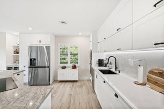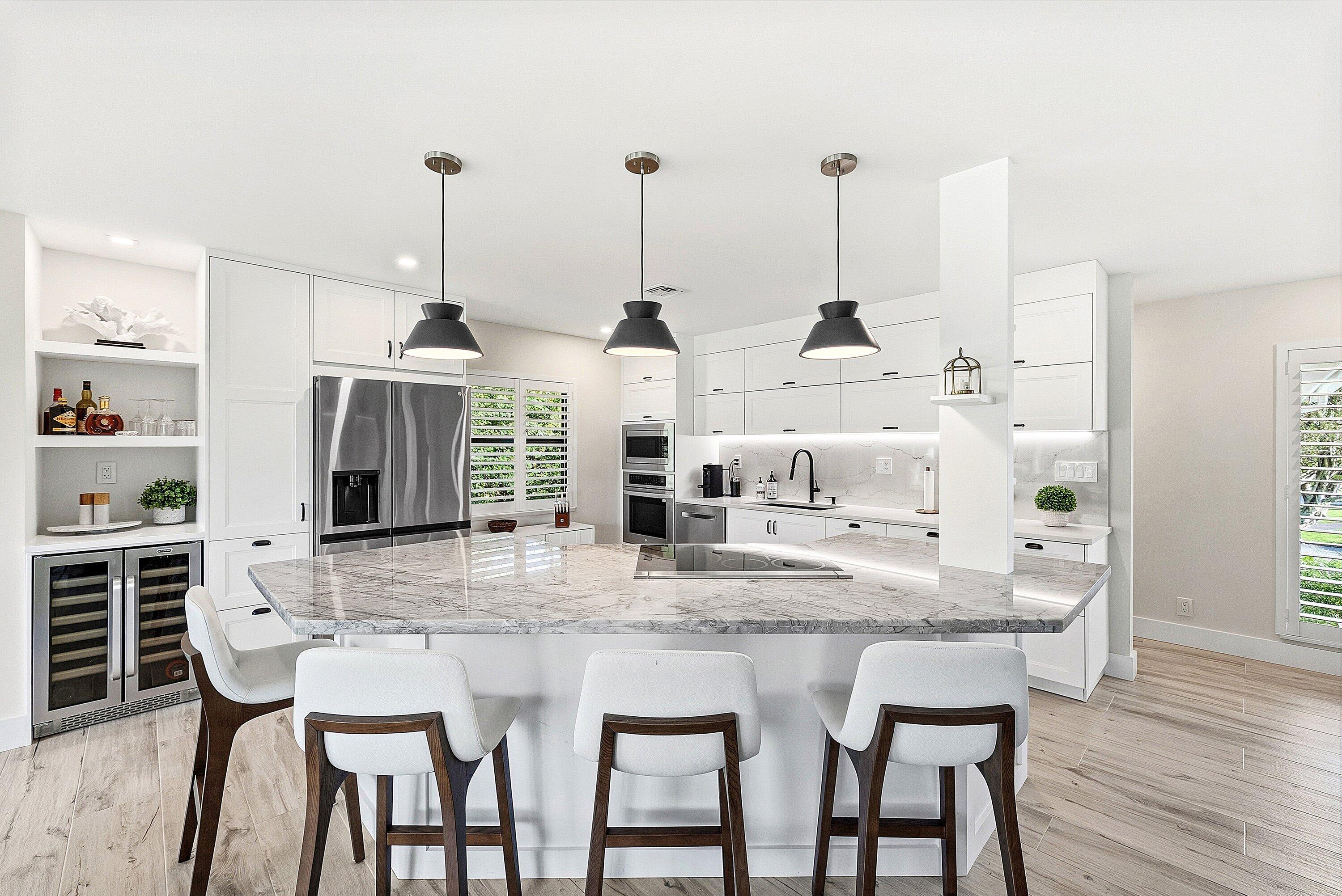 Tranquil golf course views from this 2-bedroom, 2-bath second-floor condo. The renovated open kitchen offers white cabinets, a center work island, wall oven, and microwave--perfect for everyday living and entertaining. Wood-look tile flooring throughout complements the modern design. Both bathrooms have been tastefully renovated. Bar with wine fridge. Impact glass. A must-see property. Revel in access to world-class amenities, including two challenging golf courses, a racquet sports center, fitness center & spa, and a clubhouse offering fine dining and beyond. Quail Ridge is a mandatory membership, private club community.