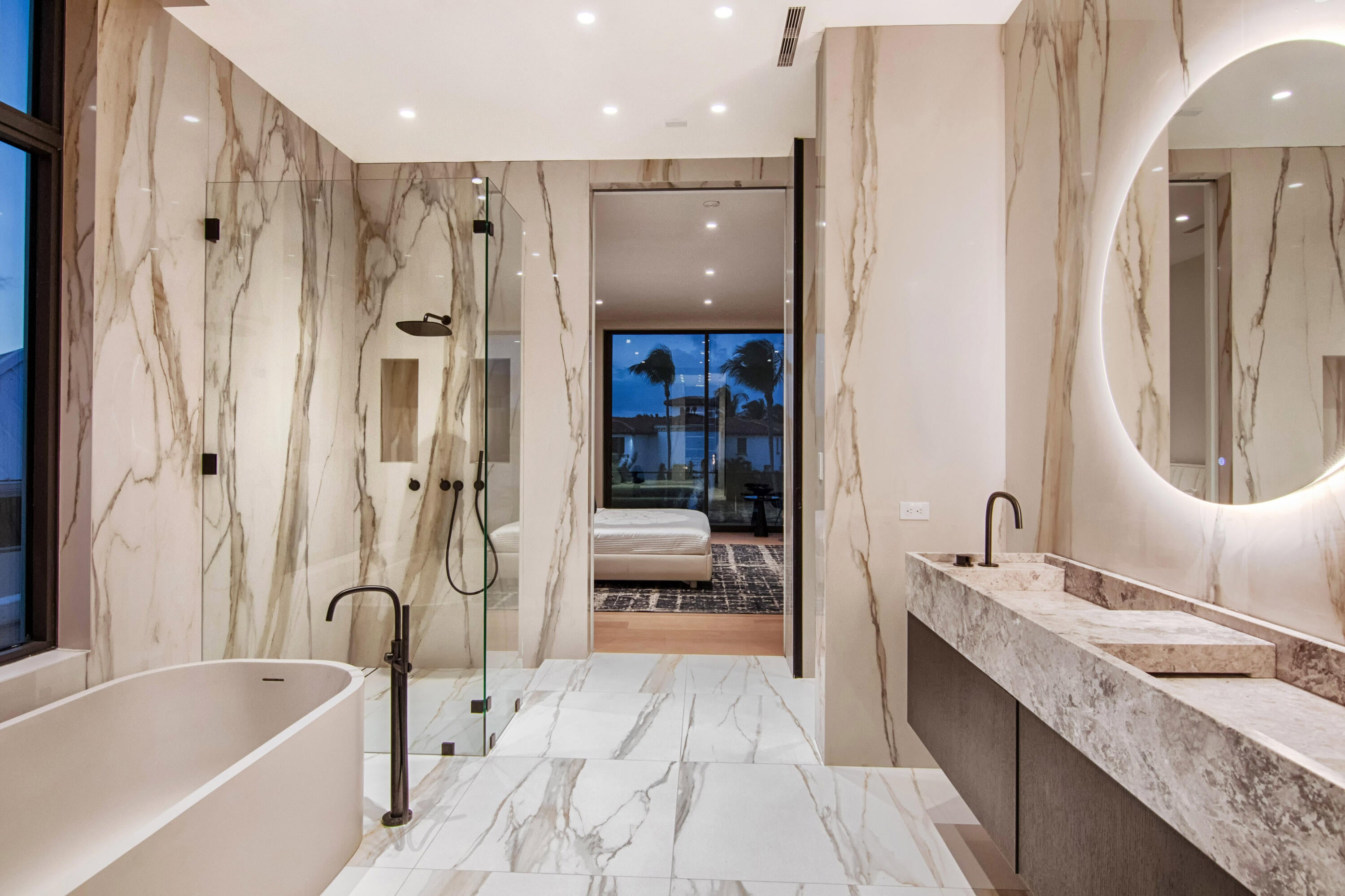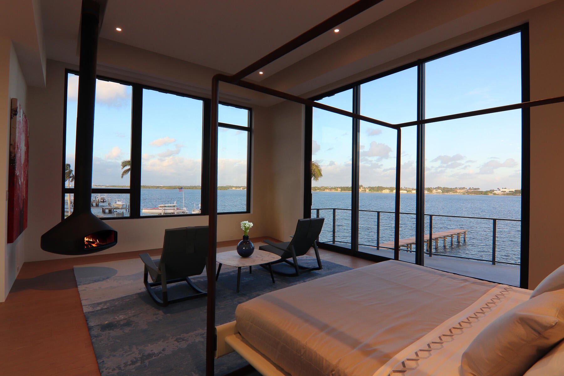 HOUSE IS FURNISHED! Perched on the Intracoastal Waterway overlooking Palm Beach Island's mega mansions, this BESPOKE waterfront new construction is one of the most exceptional homes ever brought to the market in West Palm Beach. Ideally located just minutes to Palm Beach Island and PBI airport, the residence offers approximately. 13,370 SF of full-blown luxury. Highlights include a second story-pool and spa with 180-degree water views, outdoor cocktail bar, multiple outdoor cooking areas, private cinema, wine room, spa and expansive indoor-outdoor living. Every room opens to breathtaking water views. A 100' deep-water dock accommodates large yachts, creating a true next-level waterfront lifestyle experience. Poltrona Frau custom kitchens, closets, and furnishings. 2 full kitchens.
