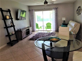 Beautifully renovated Villa. End/corner unit on the water. Eastern exposure makes this corner unit especially light and bright. Water view from bedrooms and living room. Open floor concept features White Shaker Cabinets with soft close drawers, Black Stainless Steel appliances and Sparkly White Quartz Counter tops. Crown molding, LED recessed lighting, water & ice in refrigerator. Tile floors through out. Step down Walk in master bathroom shower. Walk in shower in guest bathroom. More closets then imaginable. 5 large closets inside and large storage closet off enclosed porch. A/C 2016. New roofs installed 2020. Low monthly maintenance includes cable, water, garbage/sewer and onsite laundry with dedicated laundry time per unit. Income of $30,000 and credit score of 693 required.