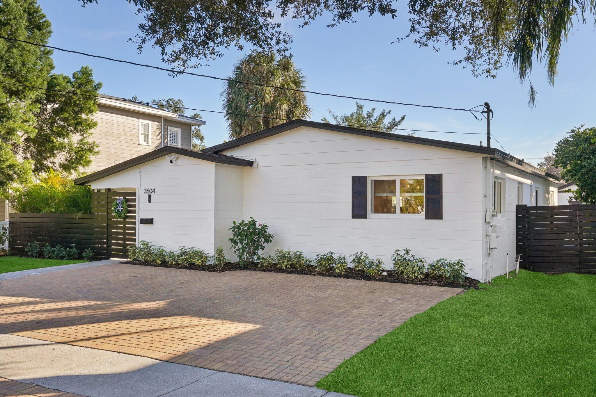 Move-in ready 2BR/2BA with a complete renovation throughout. Highlighted by an entertainer's kitchen with a generous island, Cafe appliances (2025), and LG washer/dryer (2025). Impact windows, new roof and exterior paint (2025), AC and water heater (2023). Expanded paver driveway with boat parking. Flood Zone X.This fully renovated 2-bedroom, 2-bath home offers the ideal blend of modern design and South Tampa convenience. Designed for effortless entertaining, the open kitchen features an impressive 11-foot island with ample seating and hidden storage, Quartz countertops and backsplash, custom designed kitchen with inset shaker cabinetry and new stainless steel Café appliances (2025), including a built-in wine and beverage refrigerator. A concealed LG stackable washer and dryer (2025) keeps the space streamlined and functional. Interior updates include smooth walls and ceilings, LED overhead lighting, wood-look LVT flooring throughout, and completely remodeled bathrooms (2025). Major improvements provide peace of mind, including a new roof (2025), exterior paint (2025) new AC handler and condenser (2023), and hot water heater (2023). Impact storm windows and plantation shutters enhance energy efficiency and durability. A rare find in South Tampa, the oversized paver driveway accommodates multiple vehicles and a boat. The backyard includes a work shed for additional storage or workspace. New 2025 landscaping and a Rain Bird irrigation system with drip and sprinkler zones complete the outdoor space. Located just blocks from Roosevelt Elementary and Plant High School, with easy access to local restaurants, daily amenities, and the Selmon Expressway. Situated in Flood Zone Xno flood insurance required. Move-in ready and thoughtfully upgraded throughout.