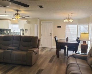 Experience the serene lifestyle of Pine Lakes Country Club in North Fort Myers! This fully furnished 2-bedroom, 2-bathroom home with a garage offers a peaceful retreat within a friendly, guard-gated golf course community. Enjoy over 40 acres of meticulously maintained resort-style amenities, including two executive golf courses, a spacious clubhouse, and breathtaking scenic views. Conveniently located near shopping, dining, places of worship, and medical facilities. Inside, you'll find new vinyl plank flooring, a king-sized owner's suite with a private bath (featuring a new shower with glass doors and an updated vanity), and a window AC unit in the second bedroom for added comfort. Currently AirB&B w/ 5 star rating.
