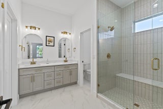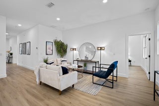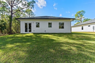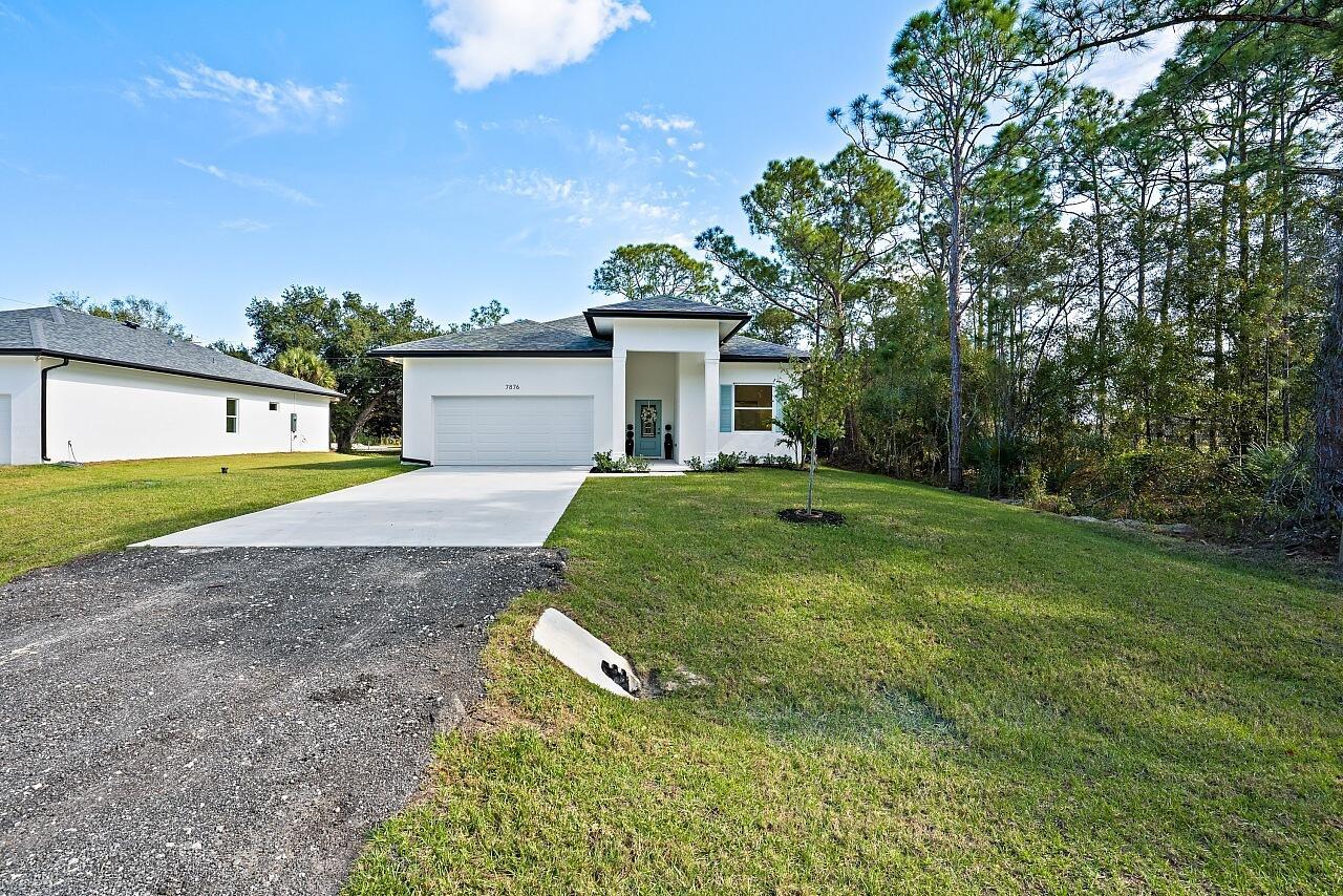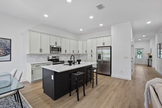Modern design and quality construction come together in this inviting ''Dahlia'' model by Jovian Homes, a respected South Florida builder known for thoughtful floor-plans, elevated finishes, and attention to long-term livability. Located in Vero Lake Estates with NO HOA, this brand-new 4-bedroom, 2-bath CBS home sits on a .24-acre lot and offers 1,793 sq ft designed for both everyday comfort and effortless entertaining. Step inside to a bright, open layout where wide-plank NuCore waterproof luxury vinyl flooring flows through the living, dining, and kitchen spaces. 10-foot ceilings, recessed lighting, and impact Low-E windows create an airy, light-filled atmosphere that feels calm and welcoming from the moment you arrive. The kitchen is the heart of the home, featuring Calacatta Goldquartz countertops, a large contrasting island with seating, solid wood cabinetry, subway tile backsplash, and a stainless appliance package. Jovian Homes is known for blending style with function, creating spaces that work beautifully for daily living while still feeling refined. The primary suite offers a peaceful retreat with a spa-inspired bath showcasing dual sinks, quartz counters, brushed-gold fixtures, and a designer walk-in shower with glass enclosure. Guest bedrooms and baths continue the modern aesthetic with oversized tile and clean, contemporary finishes. A dedicated laundry room with washer, dryer, and utility sink adds everyday convenience. Additional highlights include solid-core interior doors, impact windows and doors, private well & water softener already in place, and quality craftsmanship throughout. With no HOA restrictions, a generous homesite, and a builder focused on durability and design, this home offers modern Florida living with freedom, confidence, and lasting value. Check out next door also available but on county water 9595 79th St!
