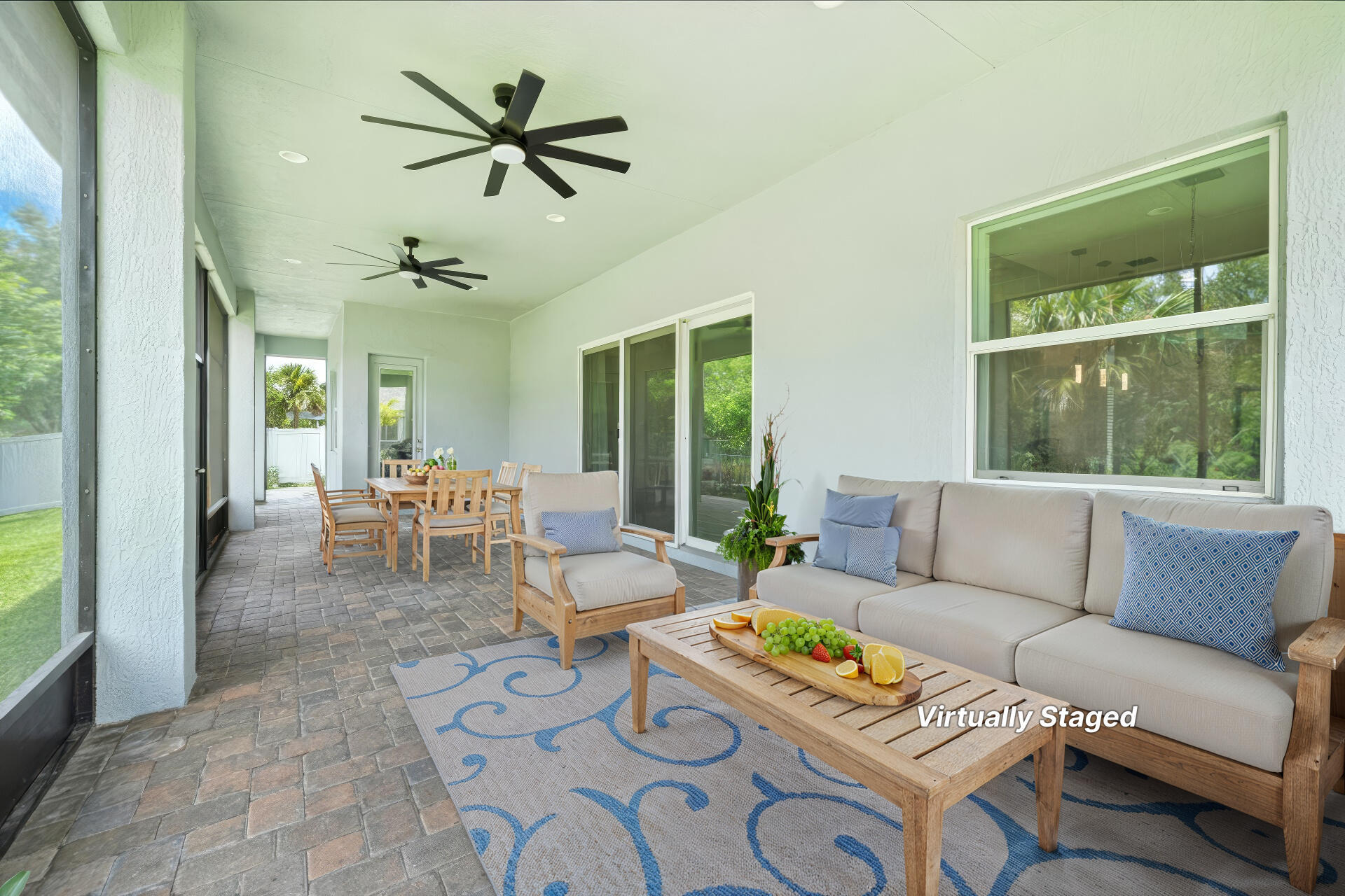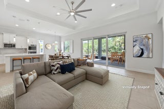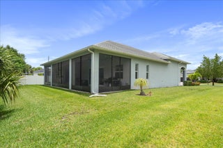 Thoughtfully designed and generously proportioned, this three-bedroom, two-and-a-half-bath residence with a flexible den or office, built in 2018, offers both comfort and versatility. The home includes a two-car garage, paver driveway, and an inviting front porch that enhances its curb appeal. The gourmet kitchen is a standout, featuring a center island with seating, striking tile backsplash, stainless steel appliances, a wall oven, pantry, and a built-in bar area ideal for entertaining. Elegant tile flooring, volume ceilings, impact windows with plantation shutters, and a tray ceiling in the main living area add refined architectural detail throughout. The oversized primary suite provides a spa-like retreat with dual vanities and an expansive shower for two with dual shower heads.A covered and screened lanai extends the length of the home, seamlessly enhancing the indoor-outdoor living experience. Additional highlights include an indoor laundry room with sink and cabinetry. Residents enjoy Huntington's gated entry, community pool, clubhouse, and fitness center, all with low HOA fees. Conveniently located just off King's Highway and minutes from shopping, dining, schools, and parks.