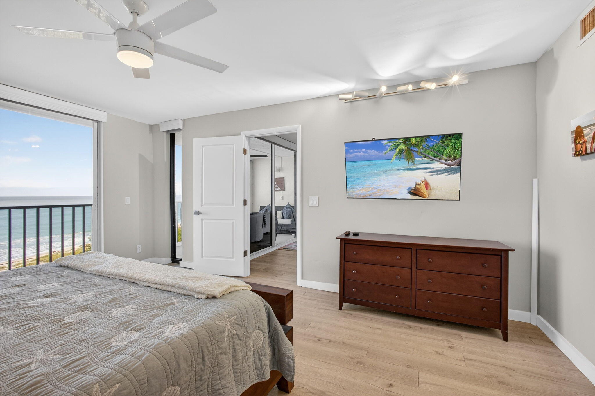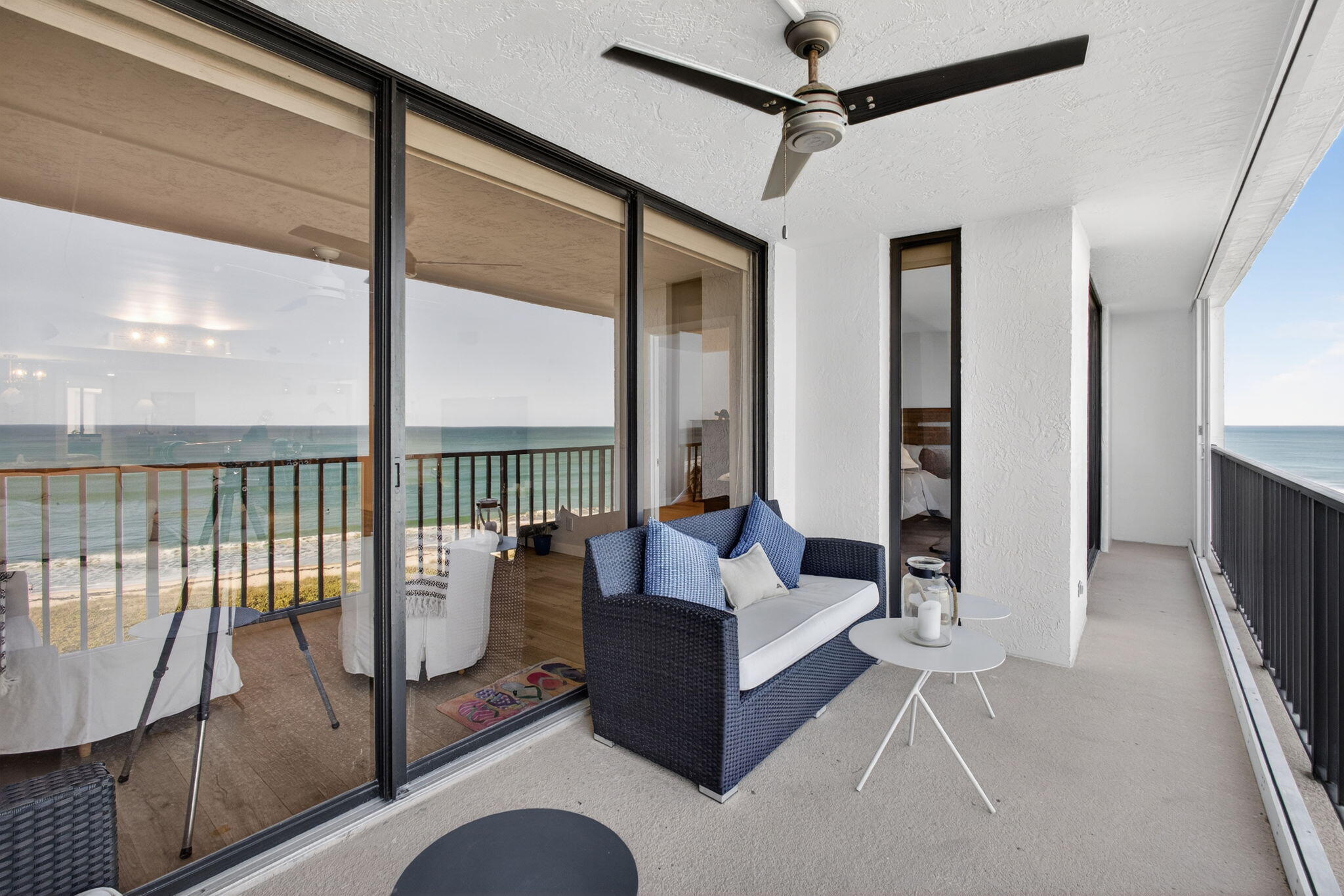 Exceptional oceanfront living of refined coastal luxury. This 3BR/2BA residence features a stunning, newly redesigned kitchen with quartz countertops, oversized island, stainless appliances, and contemporary finishes throughout. Fully furnished and turnkey. The oceanfront primary suite and expansive living area capture breathtaking ninth-floor Atlantic views, creating a seamless connection to the sea. Renovated baths offer quartz vanities and spa-style walk-in showers. Elegant plank flooring, a full-size laundry room and a guest bedroom with custom bunks provide comfort and flexibility. Enjoy resort-style amenities at Tiara Towers including private beach access, heated pool and spa, fitness center, tennis, pickleball, and an impressive lobby in a welcoming oceanfront community.