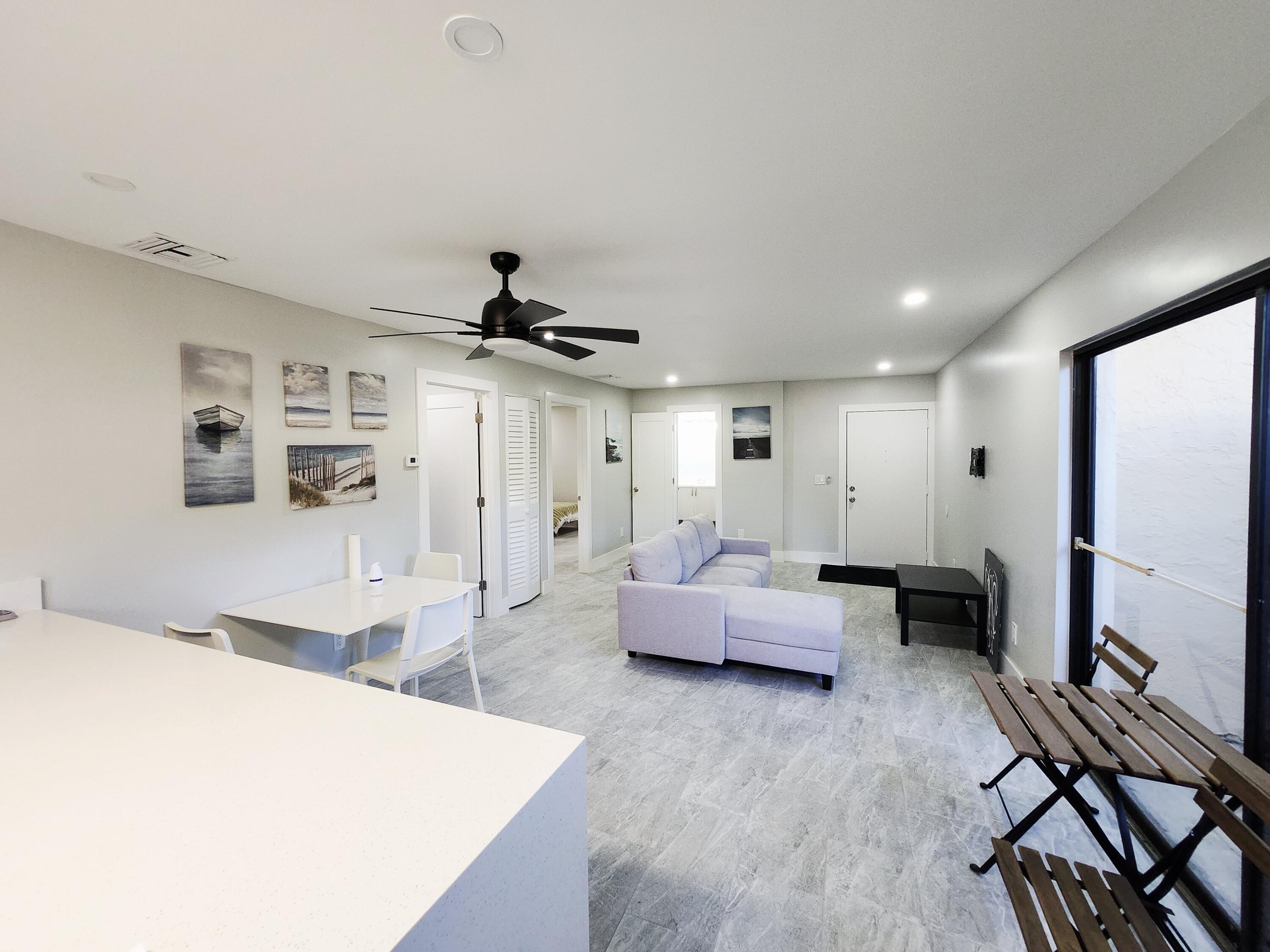 Welcome to easy, first-floor living in this beautifully remodeled 2-bedroom, 2-bath condo located in a gated community right in the heart of Fort Pierce. This move-in-ready unit features tile throughout, stylish, updated kitchen with crisp shaker cabinets, quartz countertops, and updated appliances. Both bathrooms have been tastefully updated with modern finishes, giving the home a clean, contemporary feel throughout. Enjoy the convenience of ground-level access and the perks of community amenities, including a community room with a fitness area and a refreshing community pool. Centrally located near shopping, dining, and major roadways, this condo checks all the boxes for comfort, style, and location.