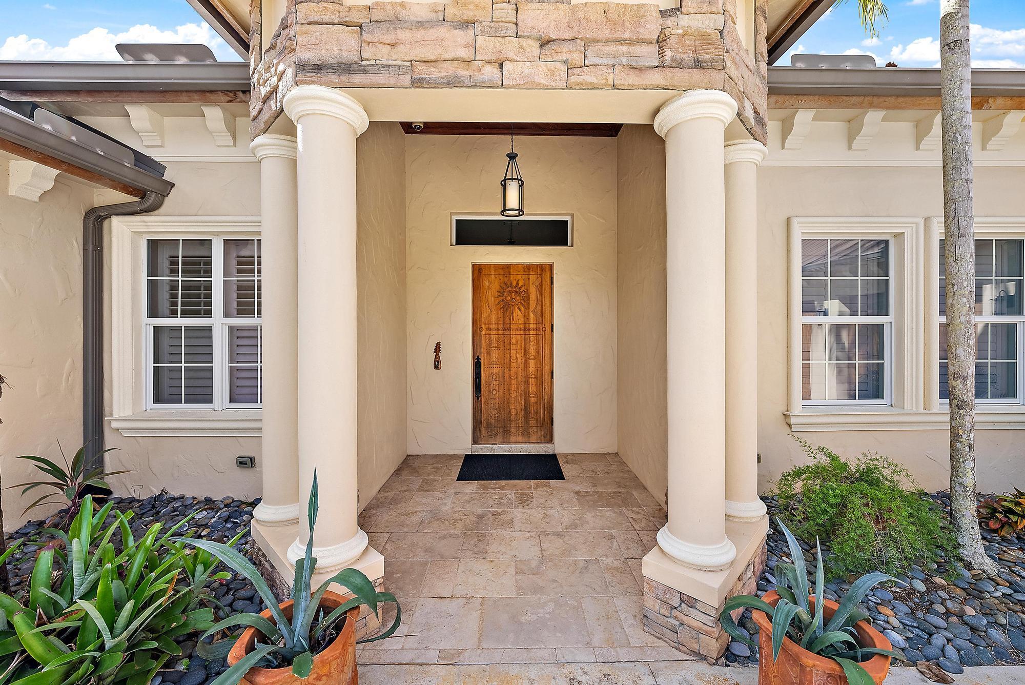 This incredible home offers 4 Bedrooms, 4.5 Baths, 8 Cars Garage, & Pool on 5.8 Acres. Welcome to ''Elephant Walk'', a private Palm City estate of rare distinction, on 5.8 pristine acres in the exclusive Stuart West equestrian community of Martin County. Designed in 2012 with CBS construction, this Southwestern-inspired residence blends architectural character with refined Florida luxury. Offering 3,667 sf under air and 6,277 sf total, the estate includes a 3BR, 3.5 BA Main Home plus a private 1BR/1BA Guest Cottage ideal for guests or extended stays. Rich African mahogany flooring, travertine tile, soaring 10-14 foot ceilings, impact glass, crown moldings, and Electrolux Icon appliances showcase exceptional craftsmanship throughout. Car collectors will appreciate the 6-8 car garages:Attached 3-car garage Plus 1,710-sq-ft detached 5-car garage/workshop. Detached garage has room for interior RV/Boat Parking. The owner's suite is a tranquil retreat featuring dual walk-in closets and a spa-style bath with jacuzzi tub and whole-body spray shower. A dedicated office, wine and coffee bar, and expansive great room enhance the interiors. Designed for entertaining, the 1,200-square-foot screened lanai features a custom horseshoe bar, gas fireplace, surround sound, and space for gatherings of 25 or more. Outdoors, enjoy a resort-style freeform pool with raised spa, firepit, and summer kitchen. The grounds unfold as a botanical sanctuary with winding stone paths, specialty palms, and a 3/4-acre lake. The Cape Club Golf Membership is available separately. Minutes from I-95, Turnpike, quaint downtown Stuart, golf, boating, dining, and beaches, Elephant Walk is more than a residence, it is a lifestyle retreat. Call Today for Your Private Showing!