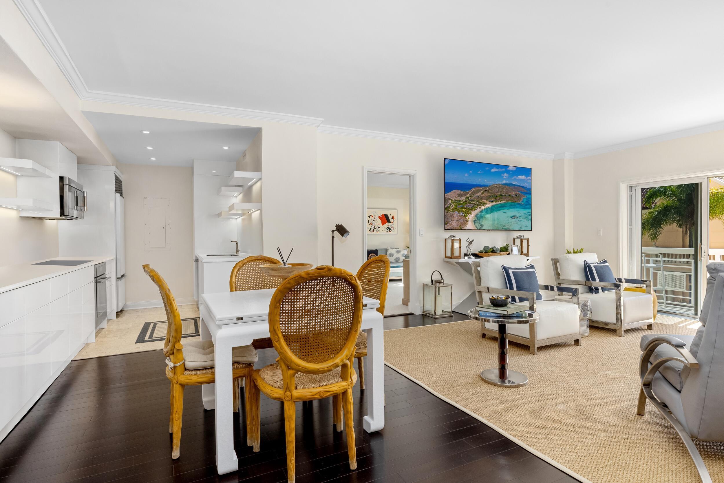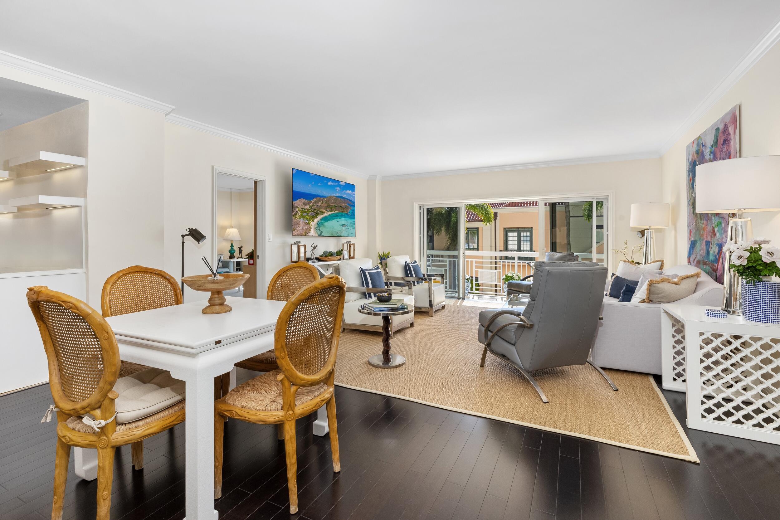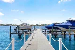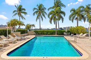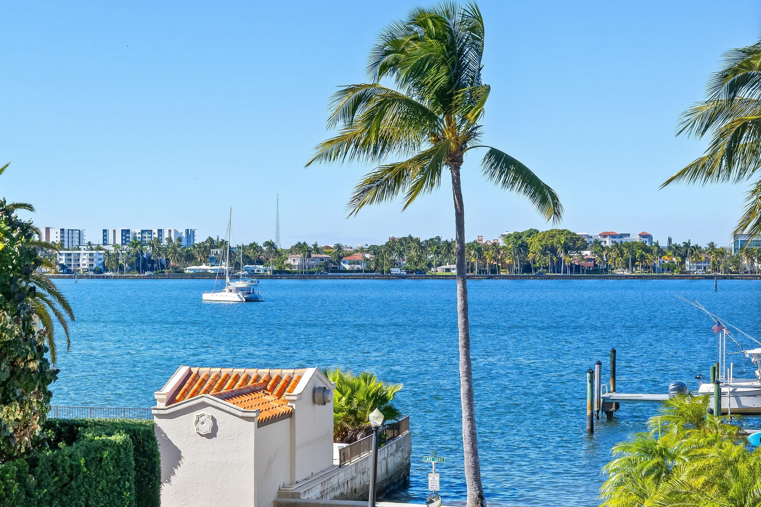 Positioned to capture Intracoastal views, this oversized two-bedroom residence offers a bright and inviting living space in the heart of Palm Beach. The expanded primary suite distinguishes the unit, complemented by an updated kitchen and baths, hardwood floors, and a generously sized balcony. Southern exposure enhances natural light throughout. Located in the full-service Lake Towers community, residents enjoy direct access to the Lake Trail, boat dockage, and a heated pool, all just steps from the waterfront.
