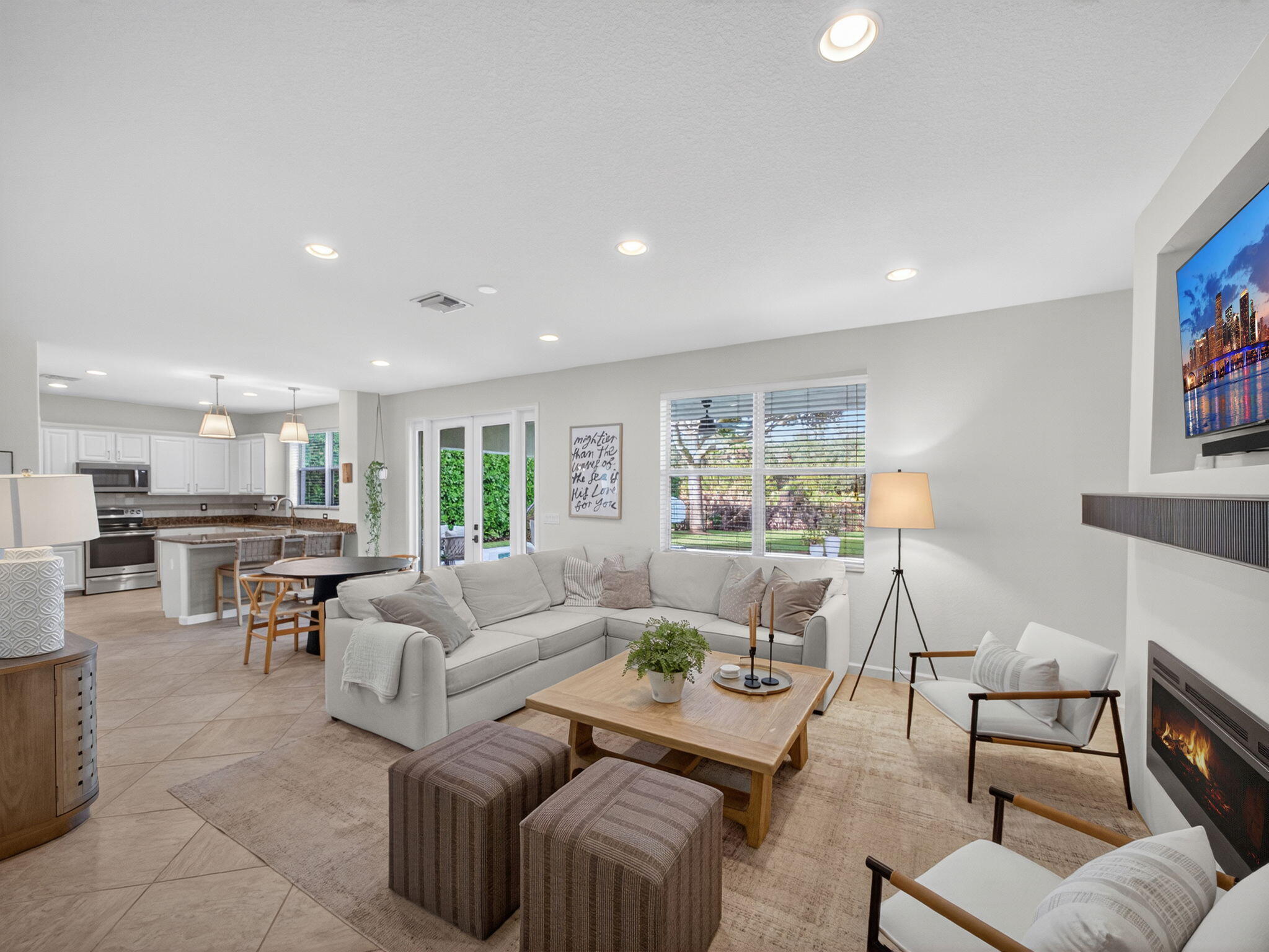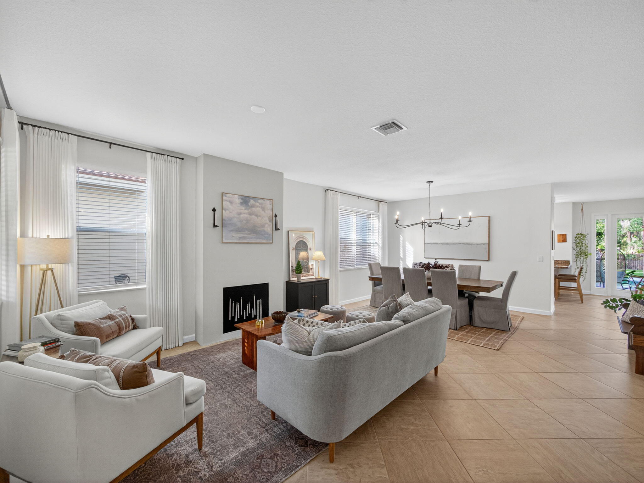 Welcome to this beautifully upgraded 4-bedroom + den, 2.5-bath pool home located in the highly sought-after, gated community of Highland Reserve in Palm City. Designed for both comfort and functionality, this residence features a freshly painted interior highlighted by custom trim work, designer lighting, new wood/vinyl blinds throughout, and unique custom faux fireplaces that add warmth and character. The well-appointed kitchen offers newer GE Profile appliances, while a custom drop zone provides everyday convenience. A thoughtfully designed flex space/office with built-ins creates the ideal work-from-home environment. Upstairs, a spacious loft/living area with built-ins and a mini fridge offers endless possibilities--perfect for a media room, playroom, or additional lounge space.Notable upgrades include a newer HVAC system with HALO purifier and UV light, a freshly cleaned roof, newer washer and dryer, and a whole-home alarm system for added peace of mind. Step outside to your private outdoor oasis featuring a large, fenced backyard with lush hedging and tranquil preserve views. Relax or entertain by the sparkling saltwater pool, complete with a new salt cell (2025) and new pump (2024). The expansive covered patio provides ample space for outdoor dining and year-round enjoyment. Residents of Highland Reserve enjoy an impressive array of HOA amenities, including 24-hour virtually manned gates, clubhouse, fitness center, community pools, professionally maintained common areas, exterior pest control, whole-home landscaping and irrigation, high-speed internet and cable, and a scenic 3-mile preserve trail system. The community also hosts beloved neighborhood events such as holiday golf cart parades and monthly food truck nights. Conveniently located near both I-95 and the Florida Turnpike, this exceptional home offers security, convenience, and an elevated Palm City lifestyle.