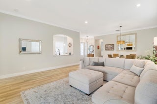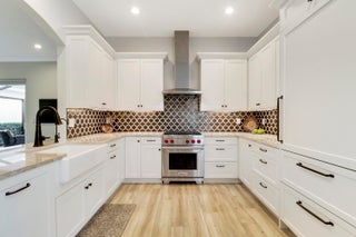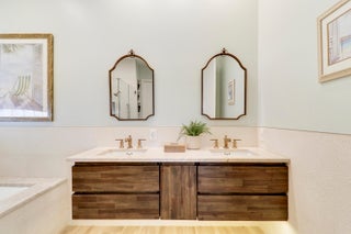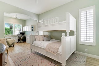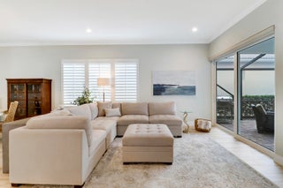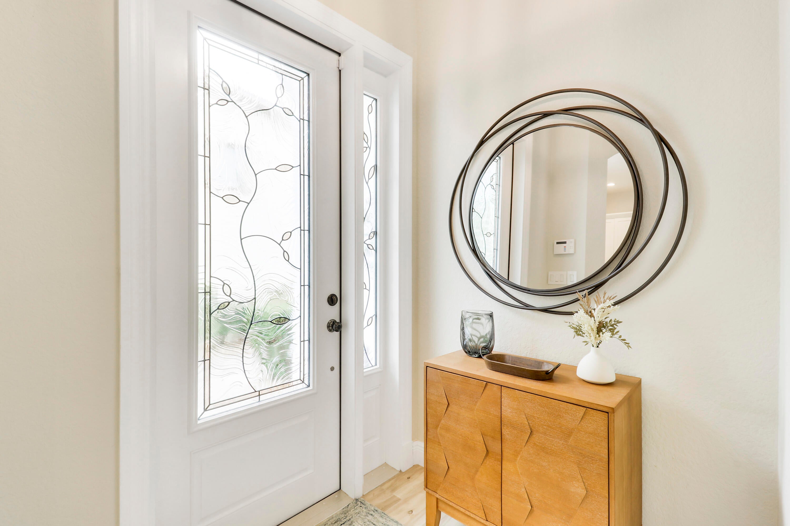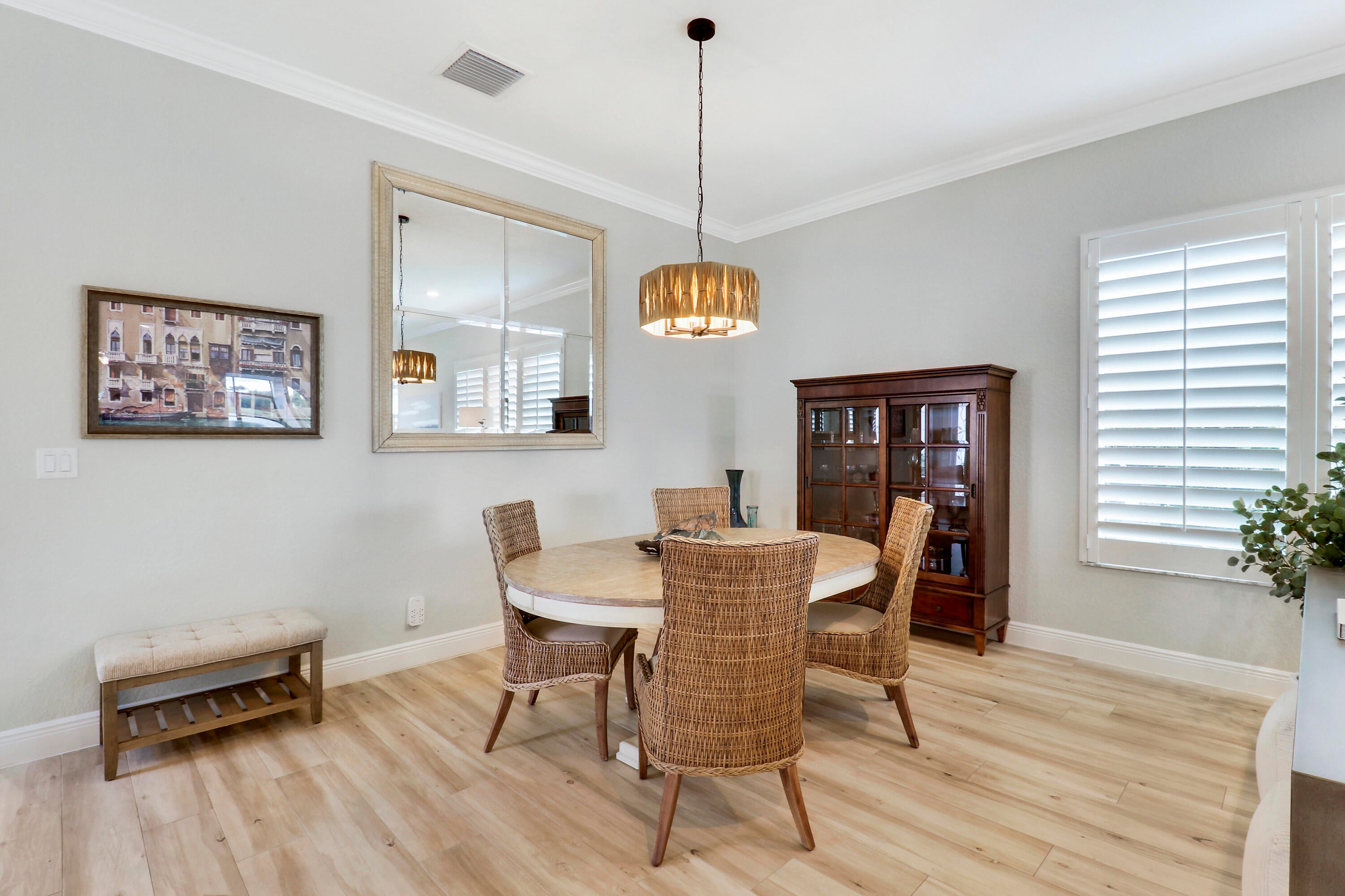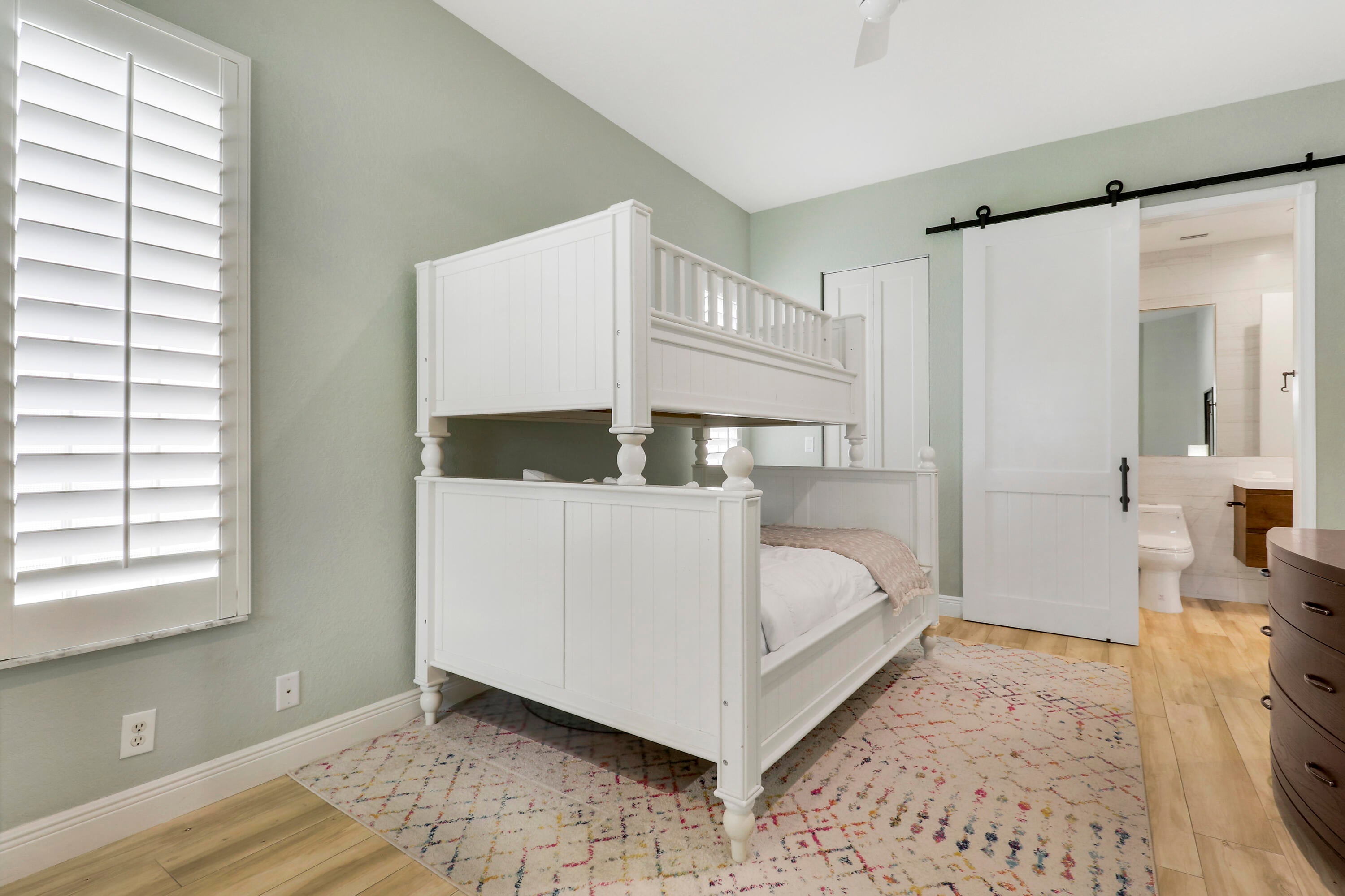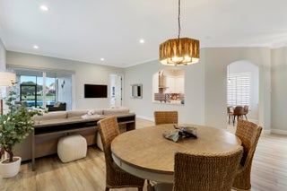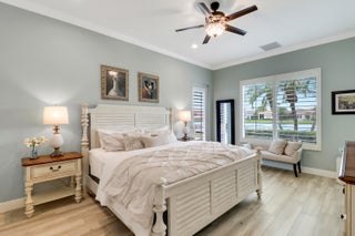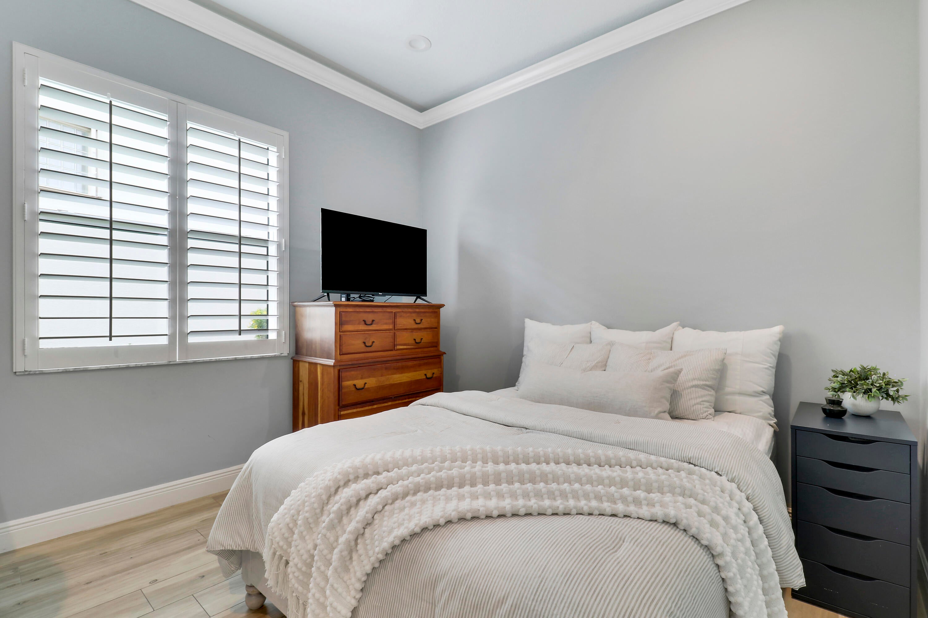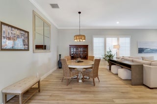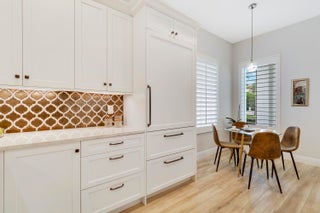 This fully remodeled 3-bedroom, 2-bath CBS Bella model in guard-gated Mirabella is set on an oversized pie-shaped lot with southern rear exposure and lake views, offering exceptional light, privacy, and ease of living. It is the most extensively upgraded Bella model in the community and has been meticulously maintained by long-term owners. Ideal for retirees, couples, or a small family seeking quality, security, and low-maintenance living. The interior features imported wood-look porcelain tile from Spain and plantation shutters throughout, creating a refined, timeless aesthetic. The chef's kitchen is designed for everyday enjoyment and entertaining, featuring a high-end Wolf dual-fuel range that runs on natural gas with electric oven precision, Taj Mahal quartzite countertops, customcabinetry, a cabinet-faced Sub-Zero refrigerator, Miele dishwasher, copper-finish ceramic and marble backsplash, and reverse-osmosis water filtration. Mirabella is one of the very few Palm Beach Gardens communities with true natural gas, and the home also includes a natural-gas water heater, gas or electric dryer hookup, an outdoor grill connected to natural gas, and a dedicated natural-gas connection ready for a future whole-home generator. Comfort and efficiency are elevated by a Trane XV variable-speed A/C system installed in 2024, designed for quieter operation, superior humidity control, and consistent temperatures. Additional upgrades include NEW PGT impact windows and doors and a whole-home water softener. Technology and infrastructure were thoughtfully integrated with ceiling-mounted Wi-Fi access points throughout, hardwired internet connections to every room for seamless streaming and remote work, a Rachio smart irrigation controller, and a professionally integrated security system with UniFi 4K cameras and a doorbell camera, with alarm monitoring covered by the HOA. The two-car garage has been extensively upgraded with a LiftMaster side-mount garage door opener, ceiling-mounted storage racks, and custom cabinetry, providing exceptional storage while preserving full parking functionality. Bathrooms have been redesigned with spa-inspired finishes, and a flexible den offers space for a home office, media room, or additional living area. The exterior features fresh paint, upgraded coach lighting, and an expanded three-car driveway. Mirabella offers a quiet, resort-style lifestyle with 24-hour manned security, premium cable and internet, an elegant clubhouse, resort pool, fitness center, children's clubhouse, and Har-Tru tennis courts. The location is exceptionally convenient, just minutes from I-95 and the Florida Turnpike, Publix, Whole Foods, Trader Joe's, Costco, The Gardens Mall, and Downtown at the Gardens, with approximately 15 minutes to the beach and easy access to Palm Beach International Airport.