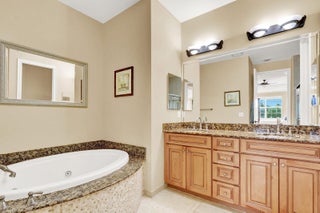 Luxury three-story lakefront townhouse offering elegant finishes and spacious living. The kitchen showcases granite countertops, 42'' wood cabinetry with crown molding, and stainless steel appliances. The primary suite features a coffered ceiling, crown molding, and two oversized walk-in closets. The spa-inspired primary bath includes a Jacuzzi Roman tub, wood cabinetry, and a granite-topped vanity. Additional highlights include an alarm system, covered patio, soaring volume ceilings, and countless upgrades throughout. Ideally located near restaurants, shopping, and I-95, with access to a community pool.
