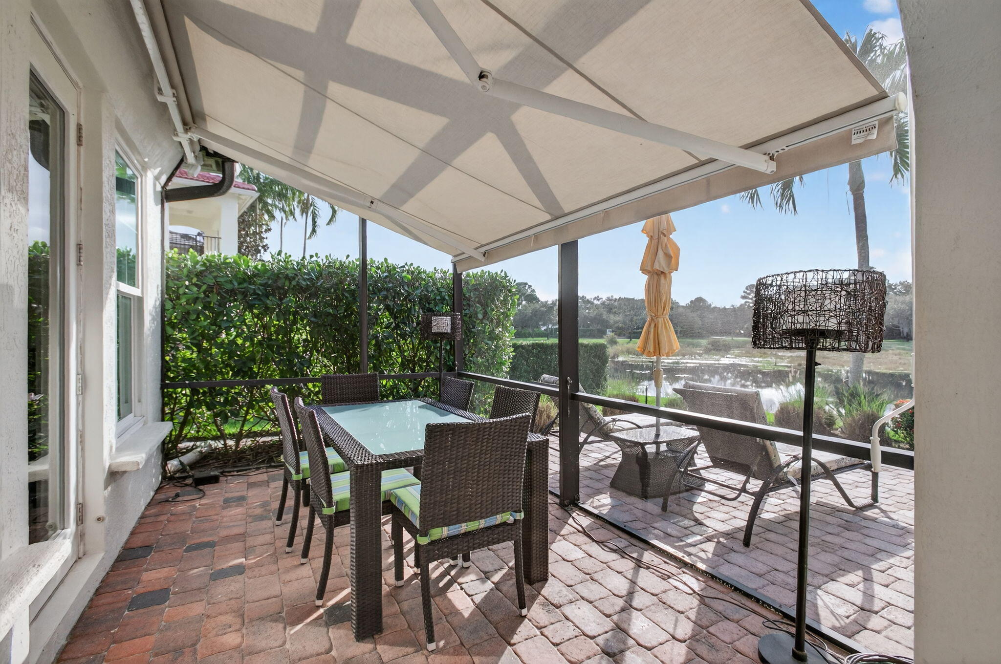 Auto Sprinkler, Awnings, Covered Balcony, Covered Patio, Screened Patio, Zoned Sprinkler, Open Porch