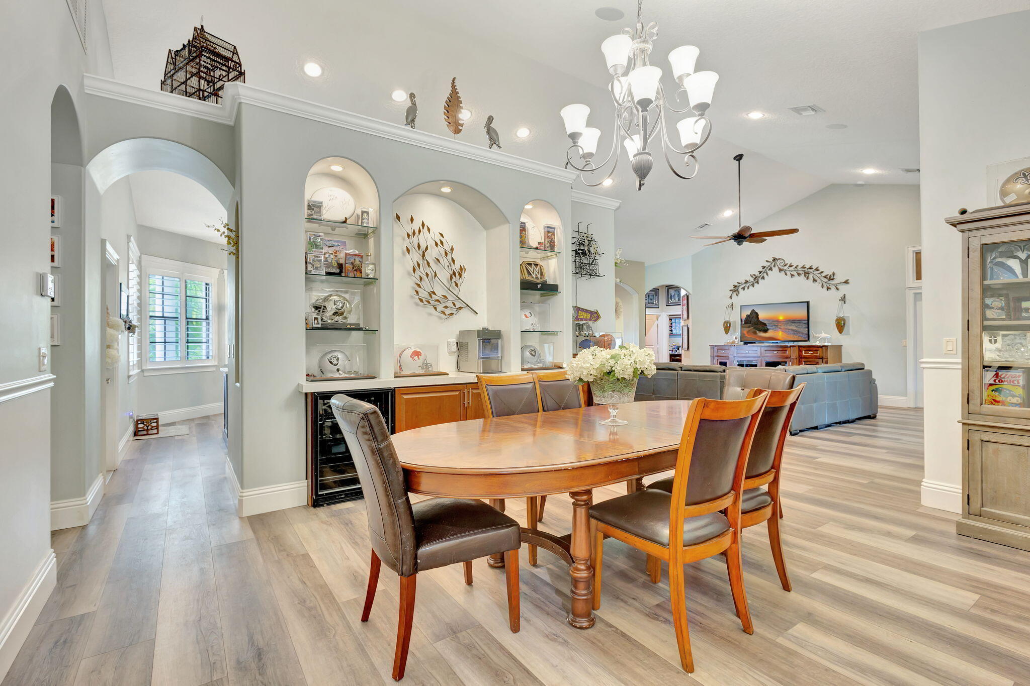 Exceptional custom 4BR/3BA ranch estate with 3-car garage situated on a private 1.14-acre lot in desirable Loxahatchee. Offering 3,677 SF of refined living space (4,943 SF total), this residence showcases timeless design and upscale finishes throughout. A welcoming wrap-around porch and formal foyer lead to a light-filled great room with soaring 14' vaulted ceilings.The gourmet kitchen is thoughtfully designed with white quartz countertops, Thermador gas range and oven, Northland glass-door refrigerator, plantation shutters, and an elegant dining area with custom buffet, wine and beverage center--ideal for entertaining. The expansive primary suite provides a private retreat with crown molding, sitting area, and a spa-inspired en-suite featuring double vanity, whirlpool tub,walk-around shower, bidet, and walk-in closet. Three additional bedrooms include a Jack-and-Jill bath, while a nearly 1,000 SF recreation room offers exceptional flexibility for a home office, gym, or media space. Notable upgrades include luxury vinyl flooring, impact windows and doors, underground propane, two newer AC units (2021 & 2024), circular driveway, overhead garage storage, and full security system. Fully fenced, animal-friendly grounds with paddock. Seller offering 1-year home warranty. Convenient to Westlake, Avenir, I-95, and the Turnpike. Seller is licensed FL Realtor. Property Type & Lifestyle " Luxury estate " Custom built home " Sprawling Ranch-style residence " Private acreage " 1.14 acre lot " No HOA " Loxahatchee estate Interior Features " Vaulted ceilings " Great room " Open floor plan " Impact windows & doors " Luxury vinyl flooring " High-end finishes " Recreation room " Media room / flex space " Jack-and-Jill bath " Spa-inspired primary suite Kitchen & Entertaining " Gourmet kitchen " Gas range " Propane gas " Quartz countertops " High end Thermador and Northland appliances " Beverage center " Wine refrigerator " Entertainer's kitchen Exterior & Land " Fully fenced " Animal friendly " Horse property " Paddock " Circular driveway " 3-car garage " Acreage living Location & Convenience " Palm Beach County " Near Westlake " Avenir area " Easy access to I-95 " Florida Turnpike " Top-rated schools