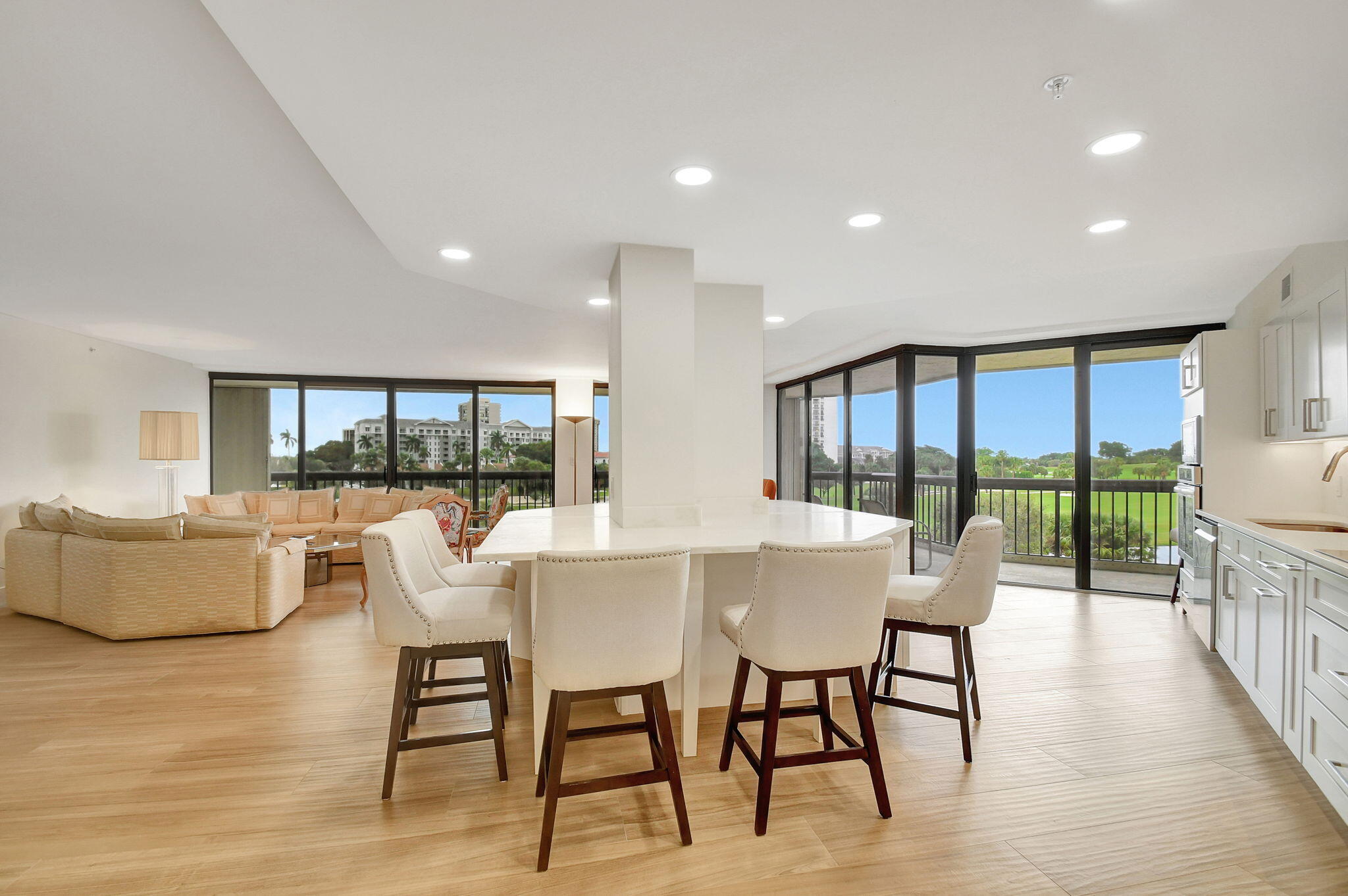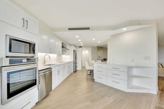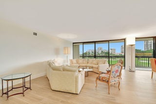 BEAUTIFUL NEW RENOVATION ~ TURNKEY! Fully renovated by an architect down to the studs, every inch of this unit is new: drywall, plumbing, electricity, AC, water heater, porcelain tile flooring, and a stylish open-concept kitchen and living area. The master bath offers a unique touch with a fogged privacy window--clear with the press of a button for a seamless blend of privacy and openness. Floor-to-ceiling windows frame stunning views of the lake, golf course, and breathtaking sunsets, while the expansive 850 SF wrap-around balcony offers a perfect outdoor retreat. Great amenities: Pool, Spa, Tennis, Pickleball, Gym, Sauna, Updated Lobby, Community Room, 1 Covered Parking #28, plus AMPLE parking, open and guest. 10 minutes from PBI Airport.