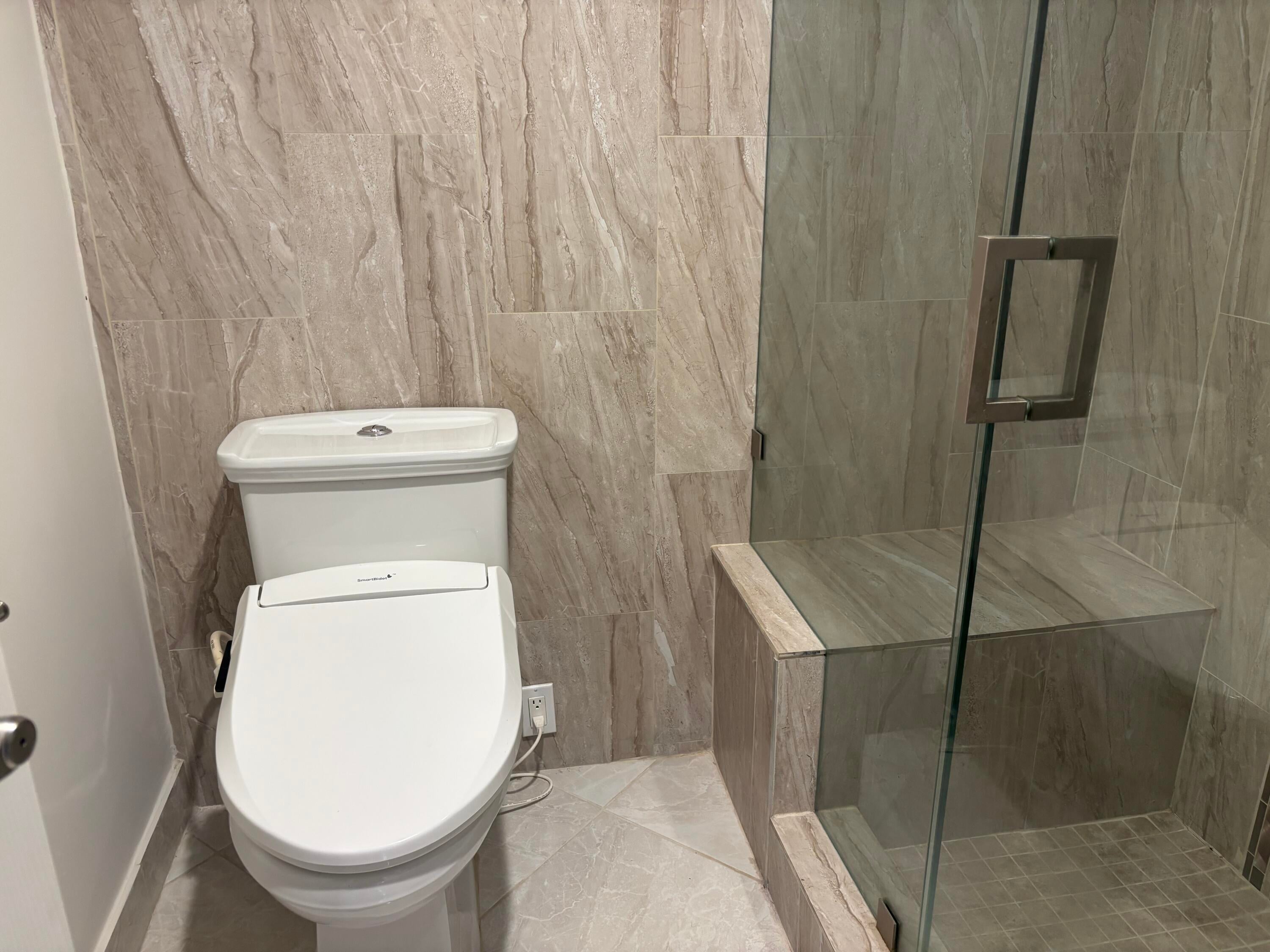 Corner Unit with Private Entrance & Serene Lake Views.This exceptional corner unit is in a desirable community and offers a private entrance and staircase, providing enhanced privacy and abundant natural light. The spacious 2-bedroom plus den layout has been thoughtfully redesigned--the den wall was removed to create a significantly larger living area and can easily be restored if desired.The entire unit has been recently painted and features elegant porcelain tile flooring throughout. Additional highlights include LED recessed lighting, a central vacuum system, and full impact-resistant windows and sliding glass doors.Enjoy year-round relaxation in the glass-enclosed balcony/patio (approximately 300 sq. ft.), equipped with electric shade blinds and air conditioning.This versatile space offers peaceful lake views and is ideal for additional living or entertaining. The primary suite features three custom-made closets, a modern vanity, and a spa-style shower with column jets and frameless glass doors. Both bathrooms are equipped with bidet toilet seats offering hot water, dryer functions, and multiple settings. The second bedroom includes a custom-built queen-size Murphy bed with integrated bookcase, maximizing space and functionality. The kitchen showcases white shaker cabinets with pull-out shelves, granite countertops, and premium LG stainless steel appliances, including a 3-door refrigerator. The oven has never been used. An LG front-load washer and dryer are also included. Major upgrades include a fully replaced AC system with new flexible ductwork (approximately 4 years old) and a tankless water heater. The building roof was replaced in 2023-2024, and there are no special assessments.