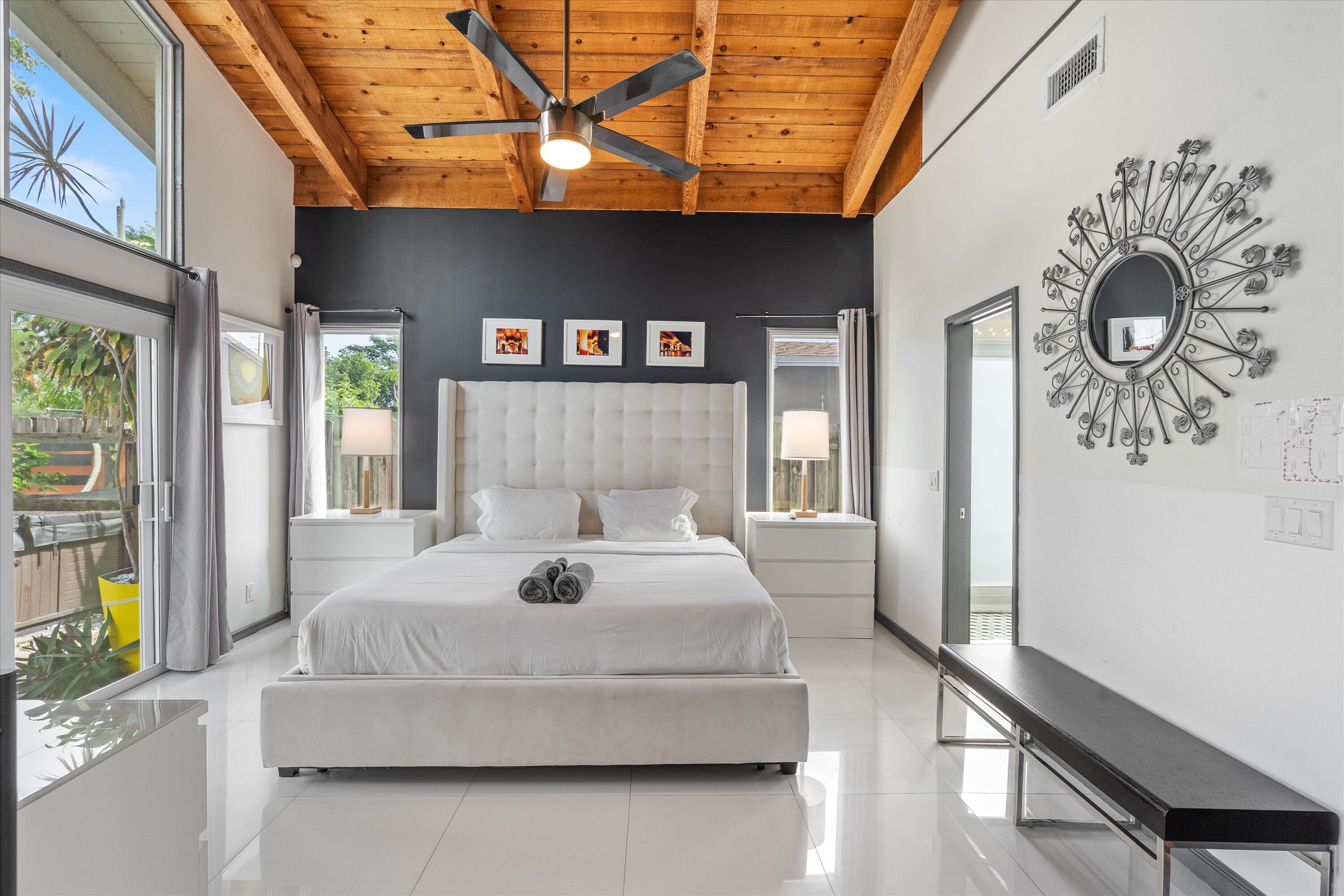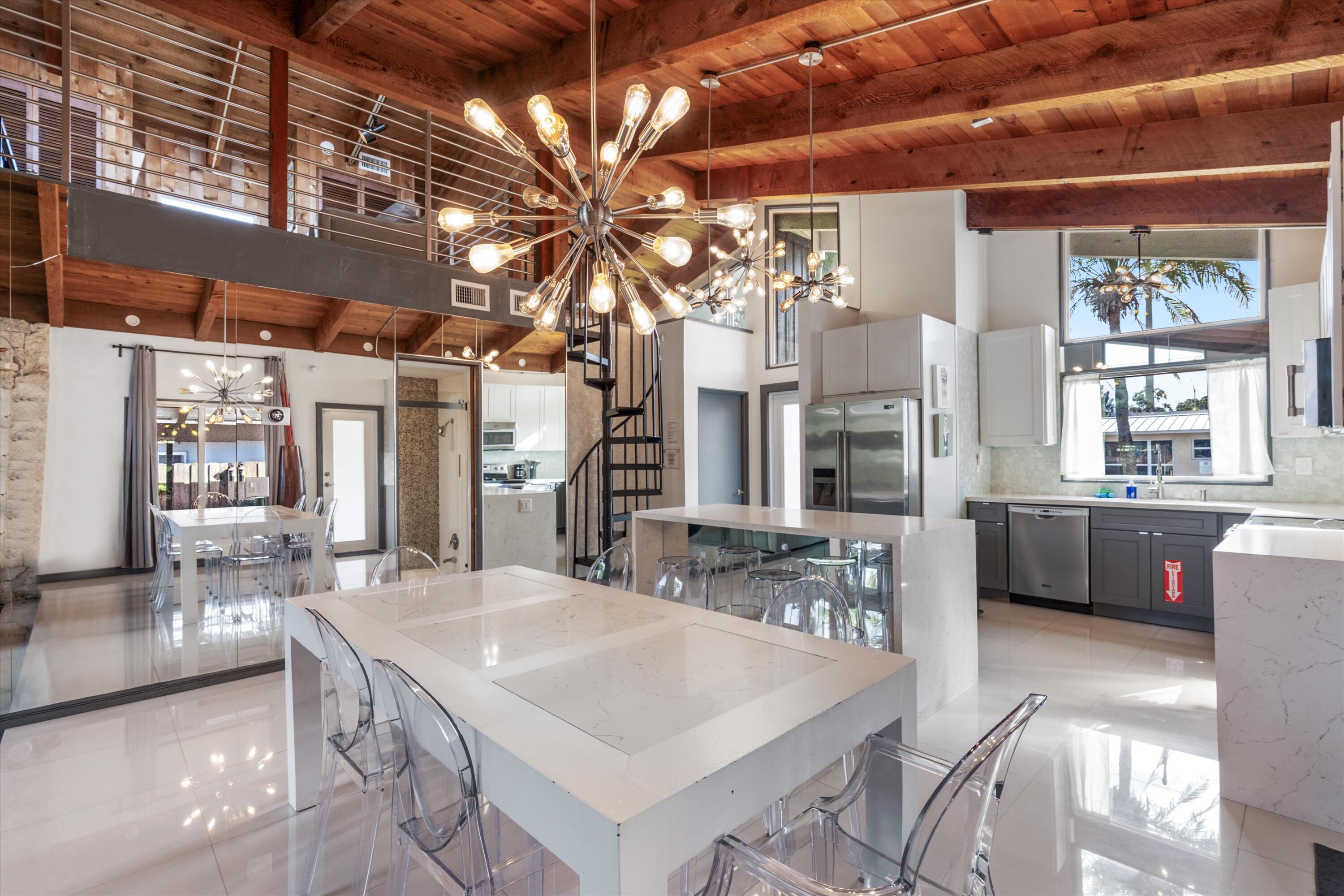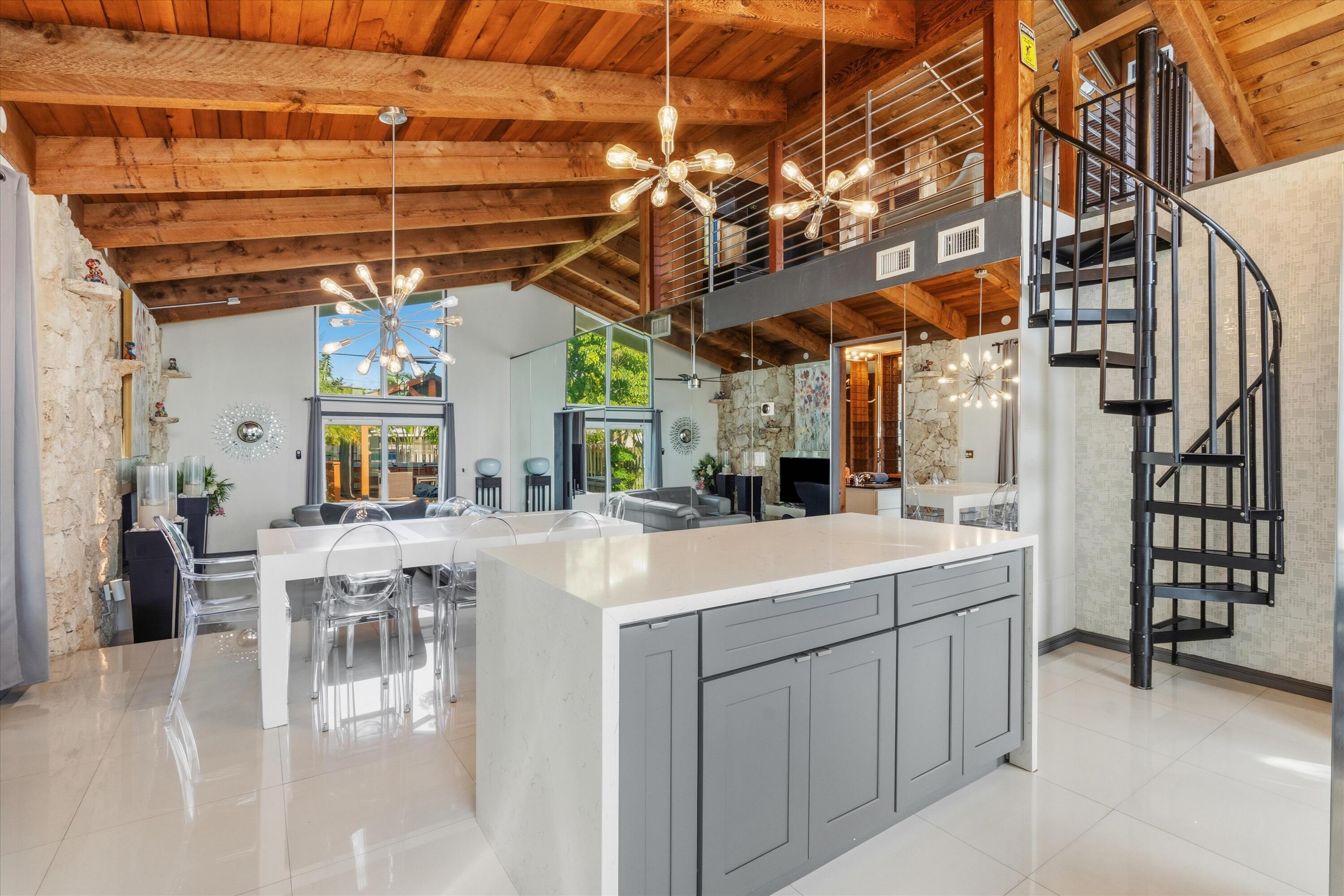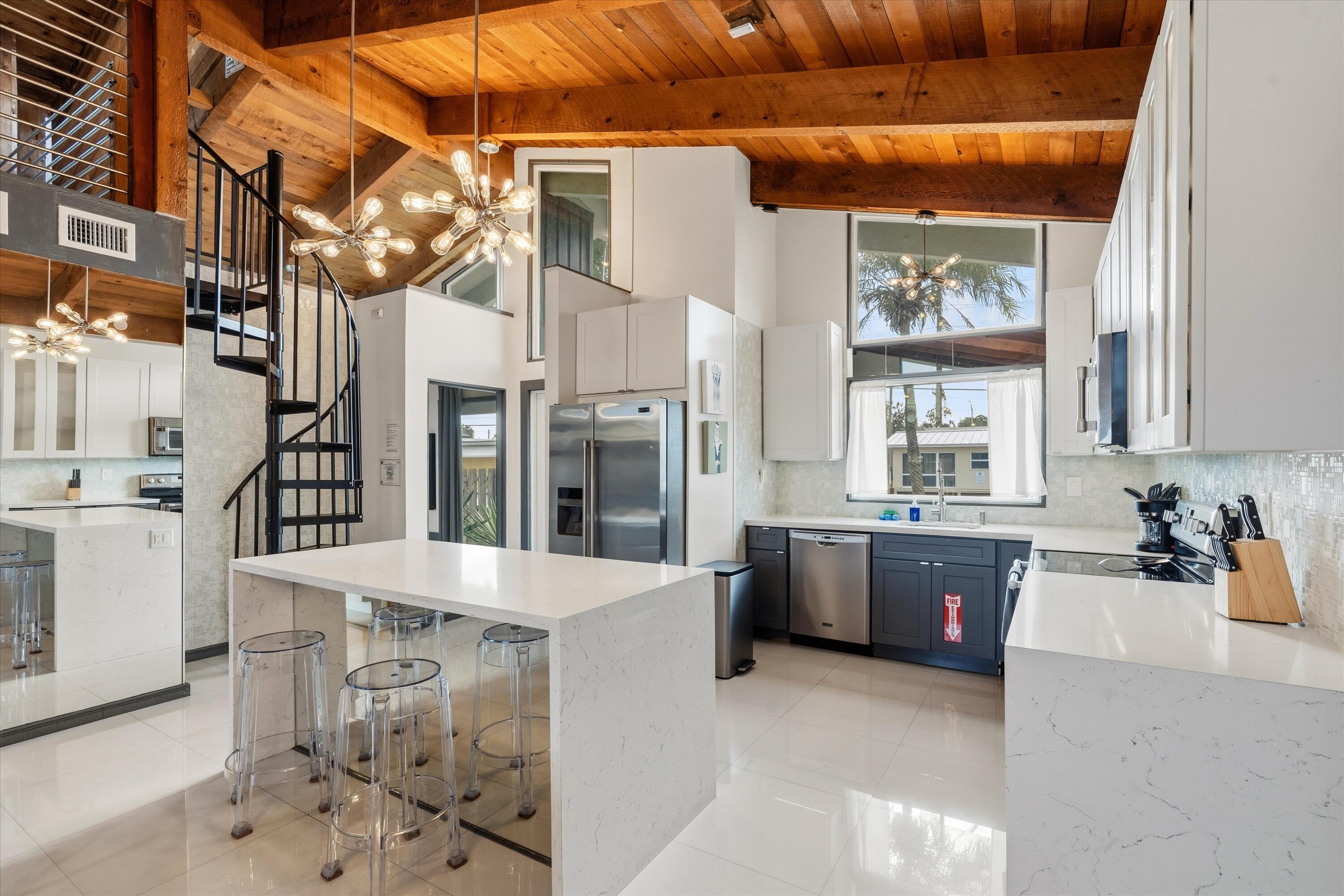 This unique home with tons of character and high vaulted ceilings is waiting for its new owner! Not only does it have a very cool spiral staircase that leads to a loft- perfect for an office, guest room or playroom, but there are also 2 bedrooms and 2 full bathrooms and a large storage suite off the carport. Updated and open concept kitchen, along with renovated bathrooms. This home is currently an active AIRBNB and can continue running as such, or make this the vacation home you have been dreaming of. Dont skip the LARGE backyard, equipped with a shade providing gazebo, above ground pool and jacuzzi! Impact glass throughout, along with redone roof in 2022.