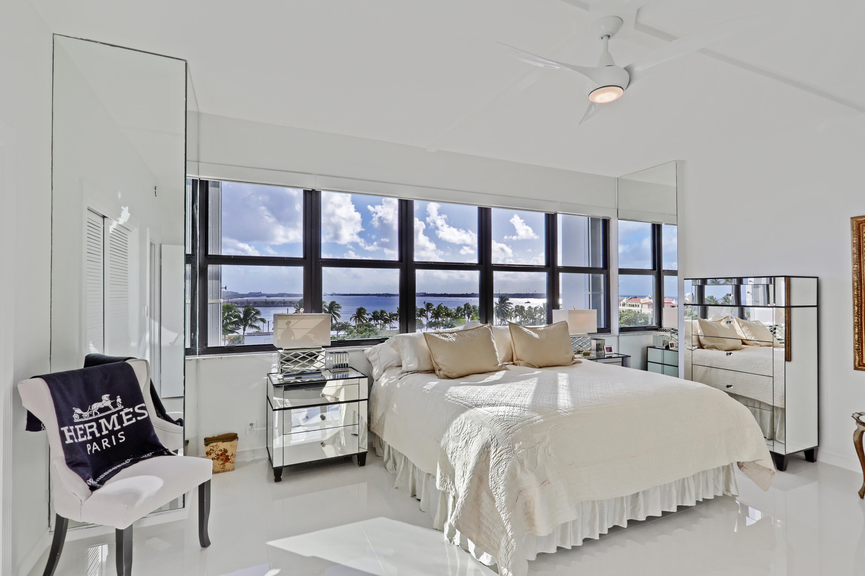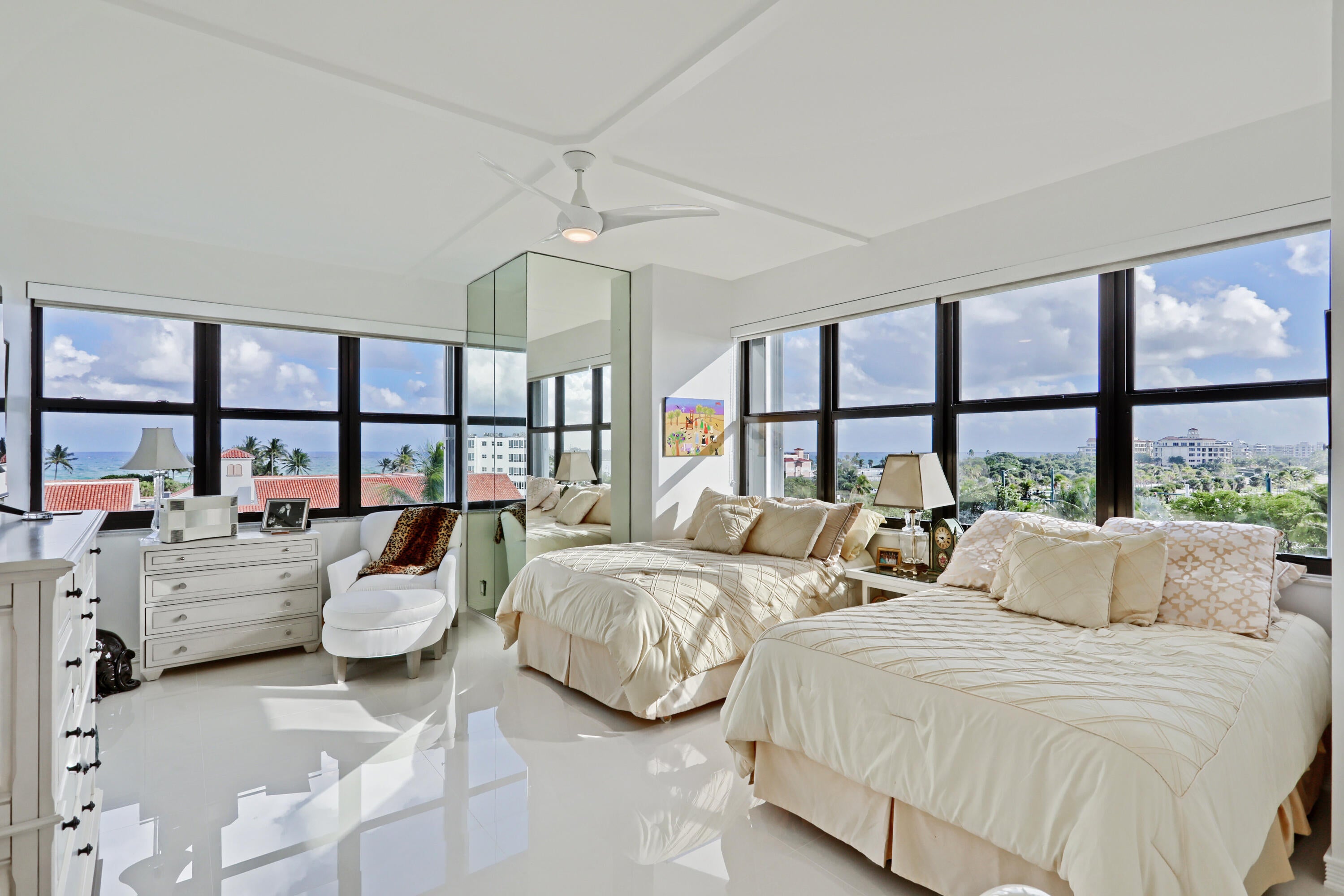3BR CORNER PENTHOUSE Ocean and Intracoastal Views: Experience unparalleled luxury in this meticulously renovated 3-bedroom corner penthouse, offering expansive ocean and Intracoastal vistas. Boasting a larger floor plan and high ceilings, this residence epitomizes sophistication. Located in the prestigious La Palma Palm Beach, a full-service building with extensive amenities, including abundant guest parking, 24-hour doorman, on-site management, manicured gardens, a heated saltwater pool, outdoor barbecue area, sauna, fitness center, and deeded beach access. In-unit laundry. Additionally, La Palma offers a unique 2-bedroom guest suite available for rental by unit owners, perfect for accommodating overflow guests. 2023/2024 roof, seawall and elevators.