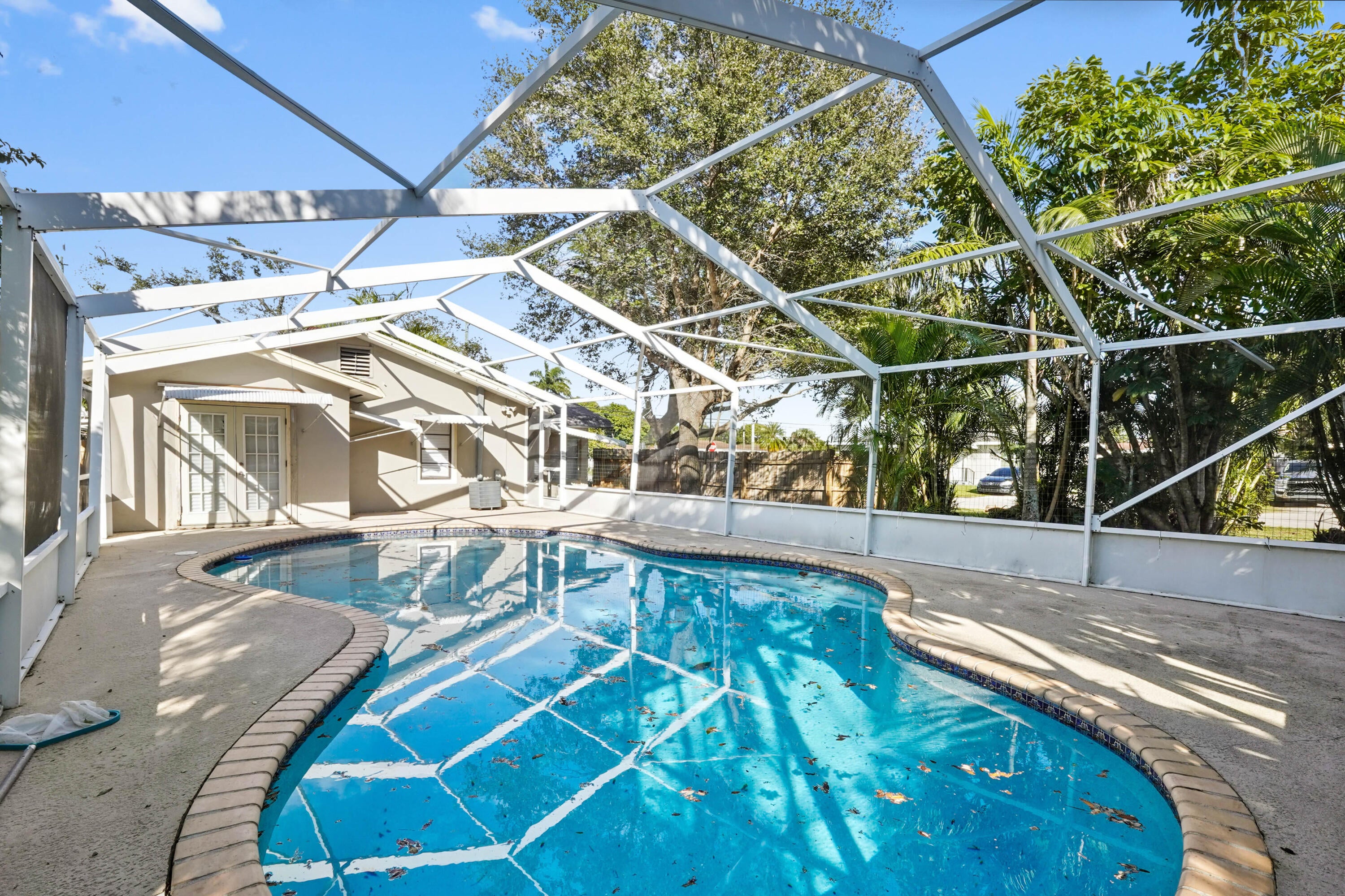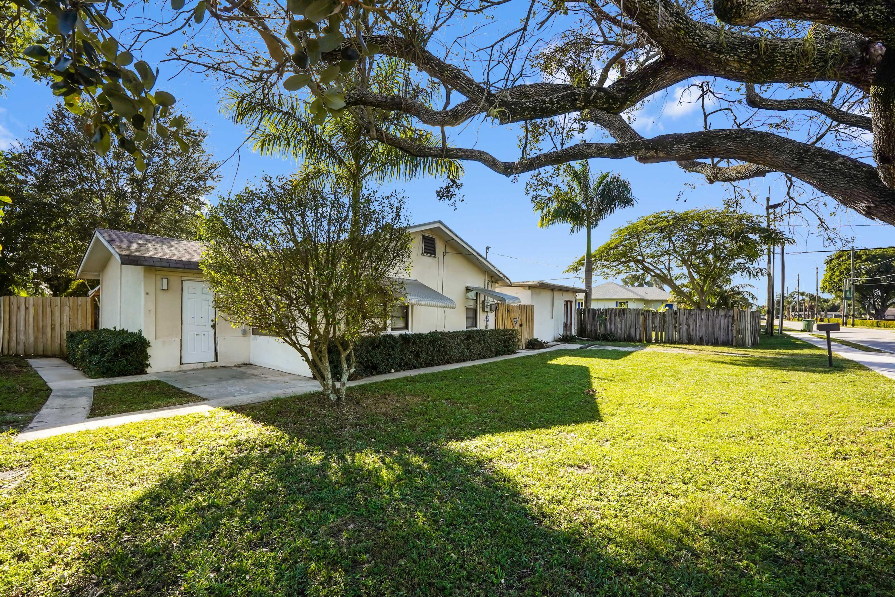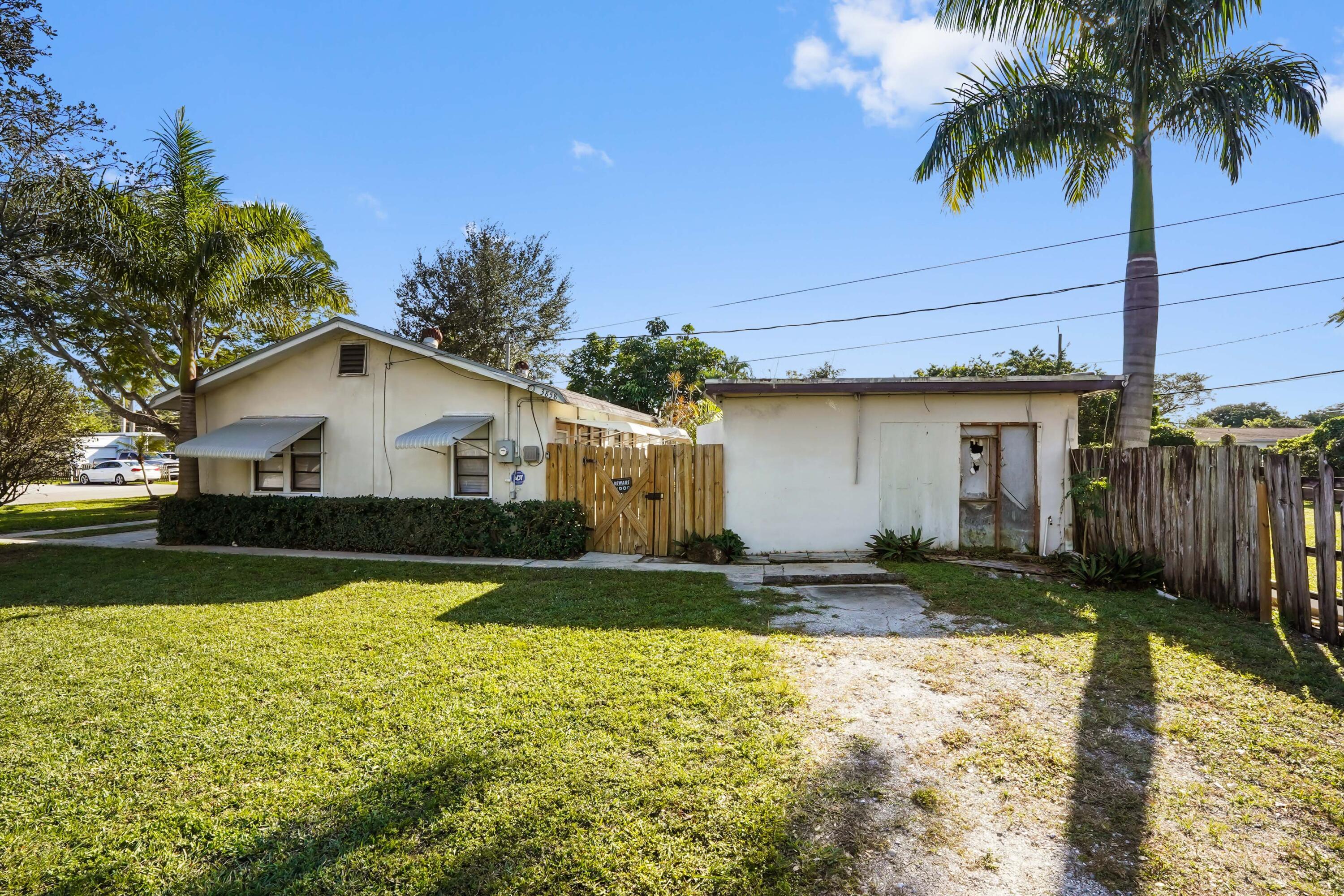 Welcome to this charming 1-story home in Lakewood Gardens, situated on an oversized 0.4327-acre corner lot with no HOA, Approved for for Multi-Family Zone, The main home offers 889 sq ft of living space featuring 2 bedrooms and 1 bathroom with tile flooring throughout and a screened pool perfect for relaxing or entertaining.Property also includes an approx. 396 sq ft accessory suite (1 bed/1 bath) that is fire-damaged and not currently habitable. The accessory structure is concrete block construction and may offer future restoration/redevelopment potential. Sewer water is available but not yet connected. With ample yard space and a prime corner lot location, this home offers comfort, flexibility, and room to enjoy Florida living at its best.