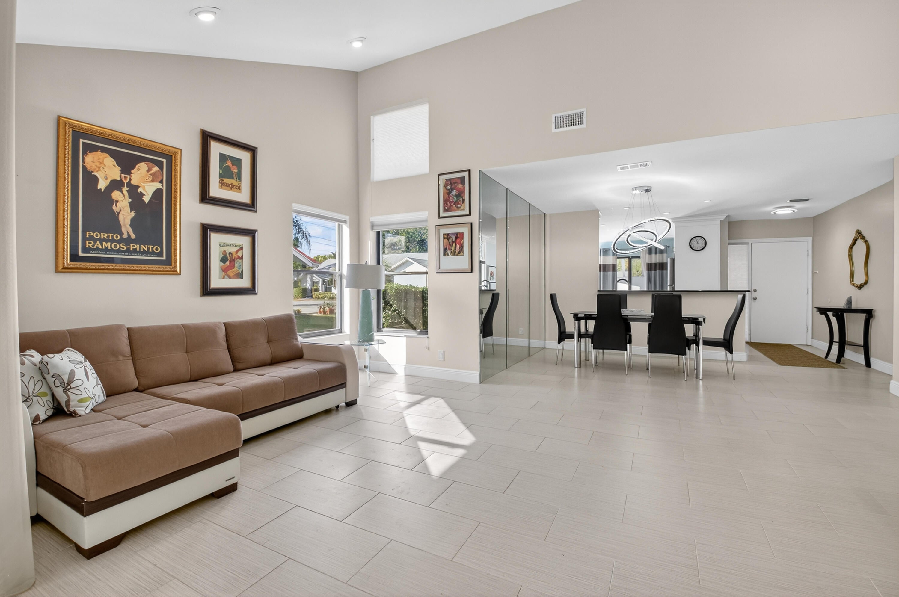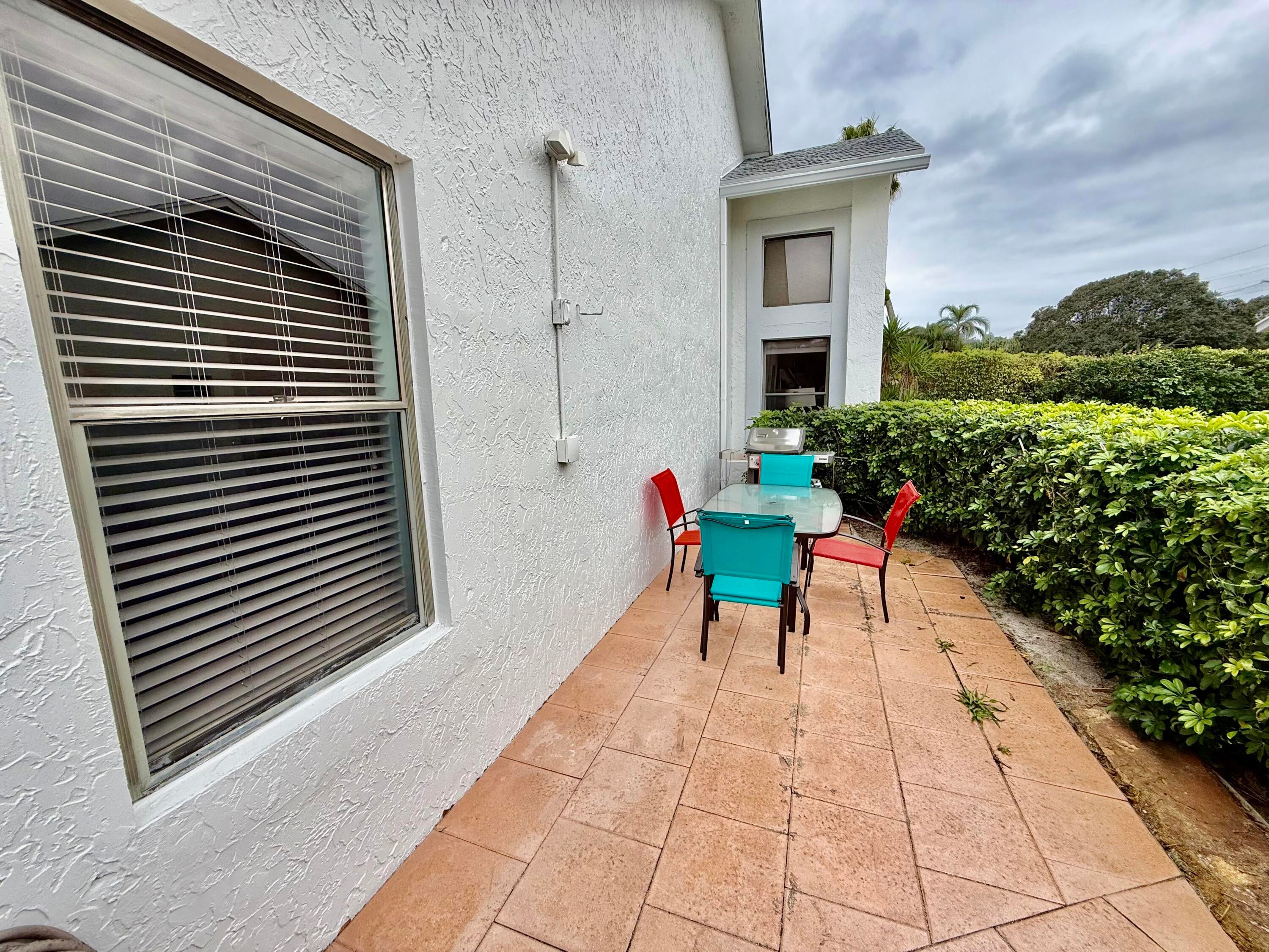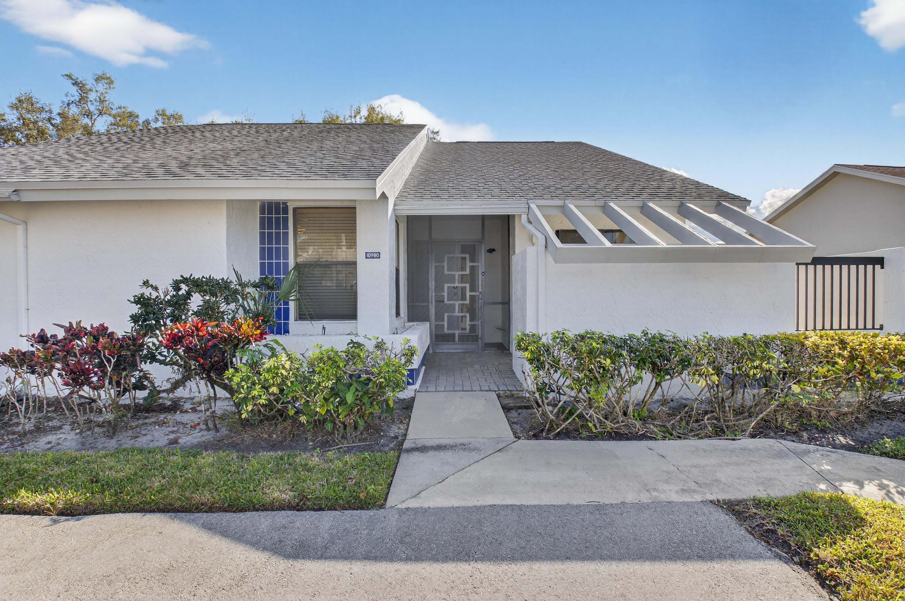STUNNING TOTAL RENOVATION! This beautifully updated CORNER villa is located on a cul-de-sac street, with 2 parking spaces directly in front, and is within walking distance to the clubhouse. This home showcases a gorgeous, fully renovated kitchen featuring white wood cabinetry, granite countertops, modern tile backsplash, and stainless steel appliances. Sliding glass doors from the cafe area open to a spacious side patio, perfect for outdoor enjoyment. The primary suite offers a large walk-in closet and a renovated bathroom with a stall shower. The 2nd bath also been updated. Enjoy year-round comfort in the air-conditioned Florida Room, beautifully glass & screen enclosed with a tranquil private view.Additional upgrades include modern tile flooring, no popcorn ceilings, modern light fixtures, & newer interior doors. Roof-2018, AC-2013, water heater-2017. This wonderful home has been gently occupied by snowbirds and is offered beautifully furnished or unfurnished. This gated community features an active clubhouse, swimming pool, tennis courts, pickleball courts, sauna, fitness room, BBQ area, pier. Up to 2 pets welcome, up to 20 lbs each. HOA covers exterior paint, lawn, clubhouse, gate. Lovely West Boca area. Convenient to The Reserve Plaza, Delray Marketplace, shopping, dining, & major highways.