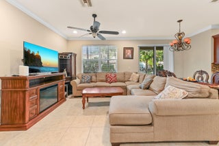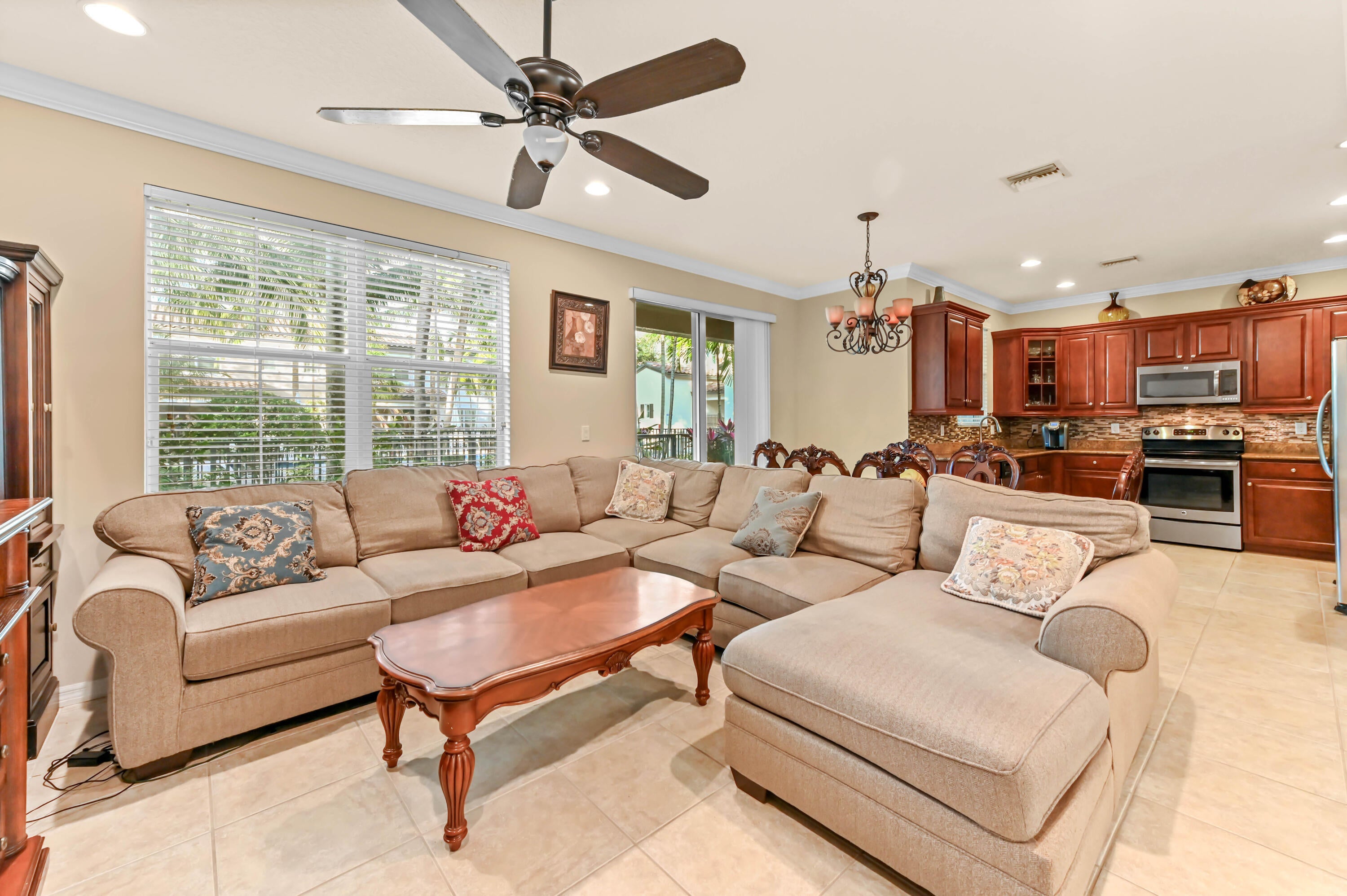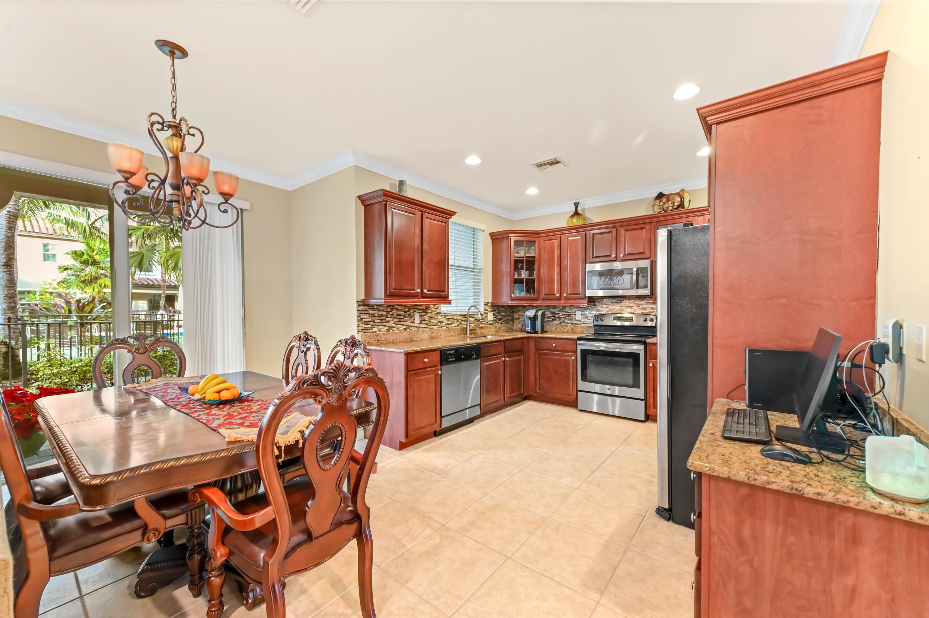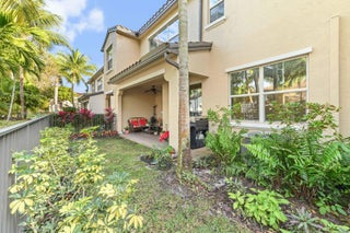 Located in the gated community of Trevi at The Gardens, this spacious 2-story townhouse offers 1,718 sq ft of living space with serene community pool views. The home features 3 bedrooms, 2.1 baths, and a welcoming foyer entry. The main level boasts an open living floor plan. 2 split garages with separate entrances.The kitchen is equipped with wood cabinets with crown molding, granite counter tops, and stainless steel appliances, offering both style and functionality. A convenient laundry room with a washer and dryer is also located on the 2nd floor for practical use.All bedrooms are situated upstairs for added privacy and feature carpeted flooring. The large master bedroom provides a comfortable retreat, while the split bedroom layout includes a Jack and Jill bathroom. Additional highlights include impact glass throughout and the security of a gated community. Enjoy comfort, space, and a prime location in this well-maintained townhome at Trevi at The Gardens.