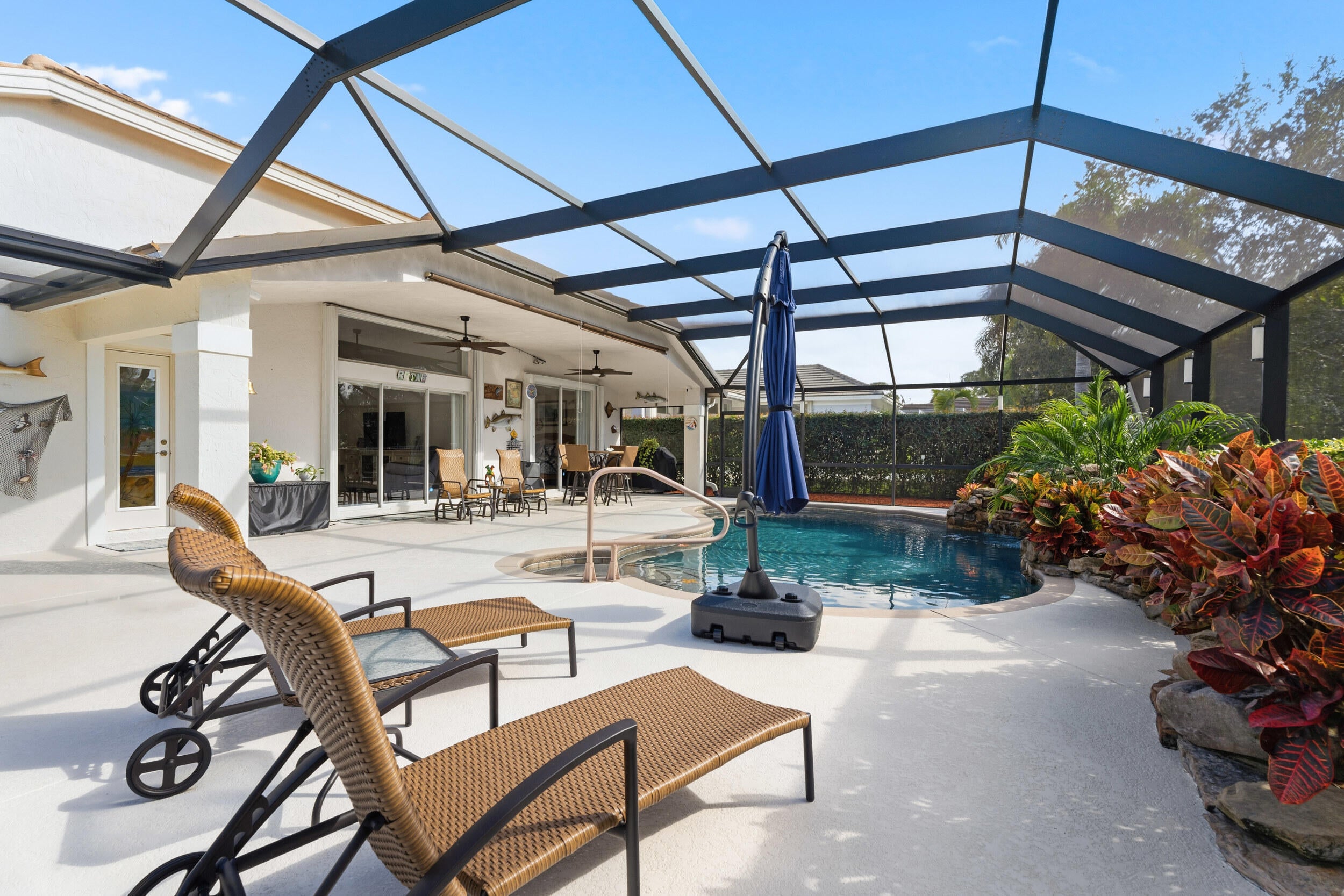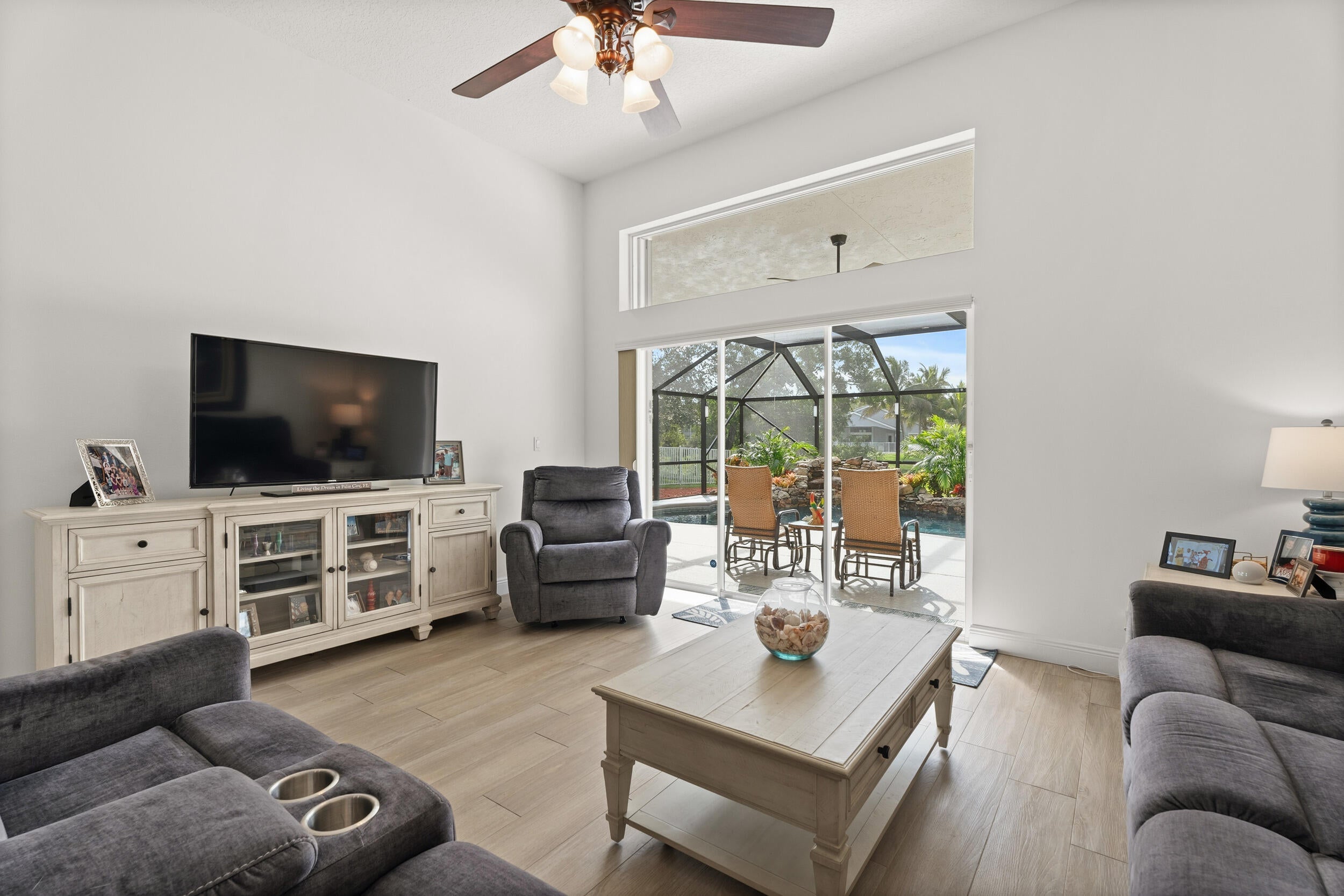 Beautifully maintained 4-bedroom, 2-bath home with 2,234 sq ft in the sought-after Hammock Creek community of Palm City. This move-in-ready home features ceramic tile throughout, a 2021 roof, and a 2018 A/C for peace of mind. Step outside to a stunning pool area overlooking a tranquil pond, offering privacy and the perfect setting for relaxing or entertaining. The open layout, natural light, and seamless indoor-outdoor living make this home ideal for the Florida lifestyle. Conveniently located near golf, shopping, dining, and major roadways. Updated, well-kept, and beautifully positioned. This is Palm City living at its best.