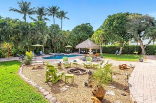 Rare Beachside Gem in Ocean Ridge - Timeless Charm, Modern Living. Welcome to your private slice of paradise in Ocean Ridge--one of South Florida's most charming, exclusive seaside towns and one of its best-kept value secrets. This beautifully updated coastal retreat is just steps from the beach with deeded private access, offering the laid-back elegance of Old Florida with all the comforts of today.Behind a secure electronic gate, a brick-paved drive leads to a detached two-car garage and a welcoming entry framed by Mediterranean columns and custom tile details. Inside, light-filled spaces flow effortlessly from the foyer into an open-concept layout featuring new solid wood floors, crown molding, and solid interior doors throughout. The spacious family room is warm and inviting,centered around a fireplace, with imported tile detailing, and framed by impact glass doors that open to an expansive backyard and patioperfect for indoor-outdoor living. The kitchen is designed for both style and entertaining, with expansive quartzite countertops, custom wood cabinetry, a breakfast bar, and top-tier stainless steel appliances, including a commercial gas range and striking Mediterranean mosaic backsplash. A formal dining area sits just steps away, ideal for easy gatherings with family and friends. This five-bedroom, three-and-a-half-bath home offers flexibility and comfort. A downstairs guest suite with ensuite bath and adjacent bonus room works beautifully as a home office, den, or optional fifth bedroom. Upstairs, the primary suite is a true retreat, complete with a sitting area, two walk-in closets with custom shelving, and dual spa-like bathroomsone featuring a soaking tub, steam sauna shower, dual vanities, and bidet; the other offering a tub/shower combination and spacious vanity. Step out onto the large tiled balcony and enjoy serene views of lush tropical gardens and a tranquil fountain. The outdoor living spaces are exceptional: a covered patio with tongue-and-groove wood ceiling, Mediterranean tile accents, graceful arches, a fire pit conversation area, and a thatched tiki hut beside the custom pool and spaall surrounded by brick pavers. Located less than a block from your private deeded beach path, this home offers miles of pristine shoreline just outside your door. Enjoy the peaceful, intimate feel of Ocean Ridge while being minutes from world-class dining, shopping, Boca Raton, Worth Avenue, and Palm Beach International Airport. A true coastal lifestyle homechic, relaxed, and an incredible value in one of South Florida's most beloved beach towns.