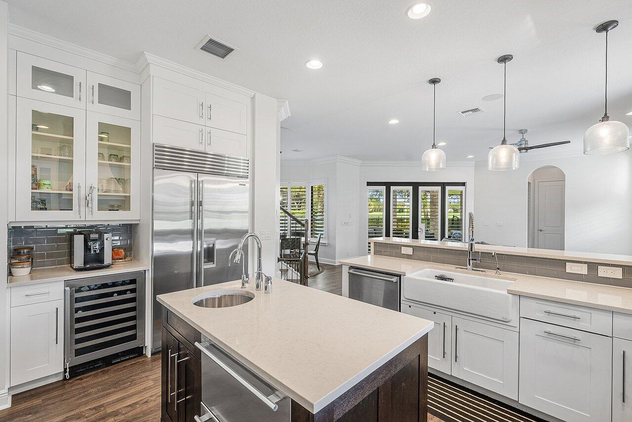 Welcome to a stunning golf and waterfront home in the highly desirable Parkland Golf & Country Club. Set on a rare oversized, nearly half-acre lot overlooking the 15th hole, with no neighbor on one side, this property offers a level of privacy and space that's extremely hard to find in the community--making it a truly unique opportunity. A grand entrance way with soaring ceilings and wrought-iron stair rails leads into a bright, open layout ideal for everyday living and entertaining. The gourmet kitchen features a Wolf gas range, Sub-Zero refrigerator, double ovens, and generous prep space, flowing seamlessly into the main living areas. Additional highlights include a dedicated office, den, theater/media room, spacious loft, mudroom, impact windows and doors throughout, and plantation shutters throughout the home with blackout shades in all bedrooms perfect for families and children. The home showcases unbelievable builder upgrades throughout, delivering quality and attention to detail at every turn. The primary suite offers an oversized shower and soaking tub, creating a comfortable, quiet and private retreat. The three-car garage offers plenty of room for parking cars and golf carts and is equipped with a sauna, cold plunge, creating a private wellness space at home. Garage also features an abundance of storage, both built in and over head with epoxy coating for added protection. Outdoors, the backyard is designed for true South Florida living with a covered lanai, custom patio fireplace, outdoor kitchen, saltwater and heated pool, and spa, all overlooking peaceful golf and water views. Smart-home features include a Control4 system, whole home water filtration system, whole-home wireless access points and sound system, outdoor security cameras, and an alarm system. Residents enjoy resort-style amenities including a full-service fitness center with childcare, championship golf, three restaurants, tennis and basketball courts, and a beautiful clubhouse, all conveniently located near Pine Trails Park and Parkland's highly regarded schools.