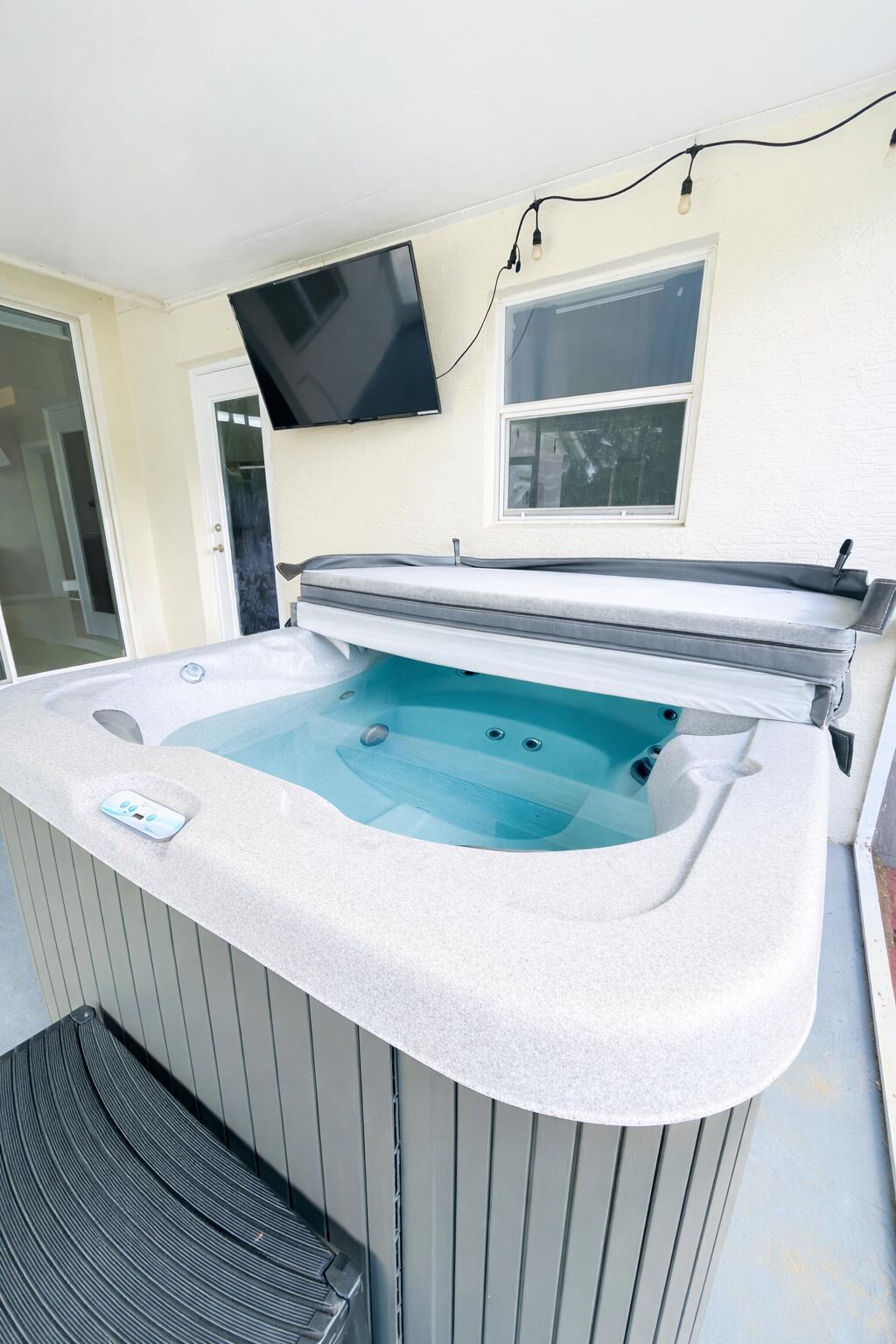 Spacious rental on 1.31 acres in The Acreage offering privacy, comfort, and thoughtful upgrades. Fresh interior paint and new carpet enhance the interior, while the fourth bedroom features a private ensuite ideal for guests, in-laws, or a home office. The fully fenced property includes an electric entry gate, with an additional fenced area behind the home ideal for children or small pets. Additional features include an RV pad with dual amp hookups and a propane generator powering most of the home. Outdoor living offers a screened patio, relaxing hot tub, fruit trees, and peaceful canal views. Please note: a third shed on the property is not included in the lease. A rare opportunity to enjoy space and tranquility while remaining conveniently located