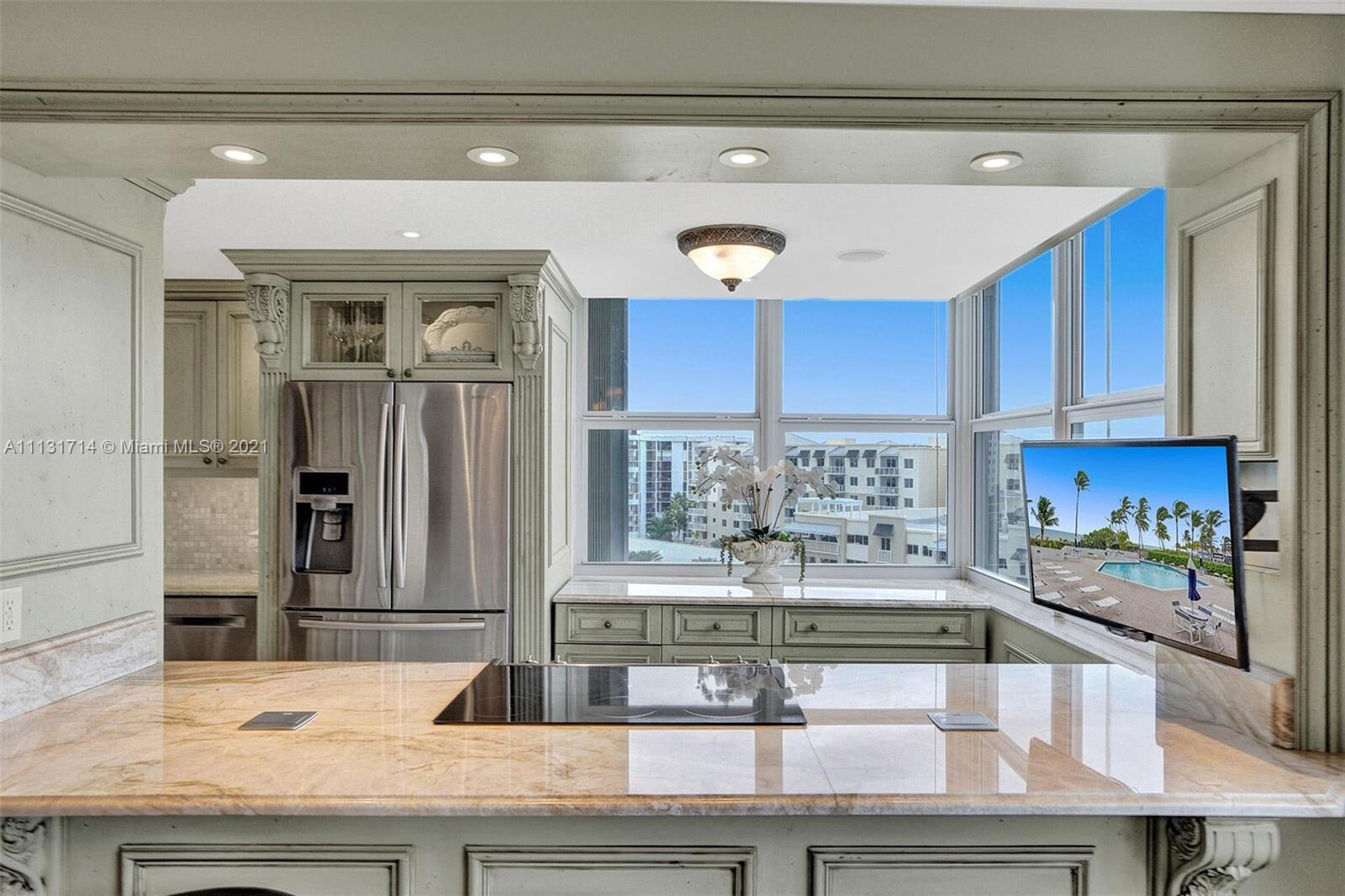 Stunning unit in beachfront building with views of the Ocean, Lake Santa Barbara, and the Intracoastal. This classic, French-Provincial unit is completely renovated. A Steven G designed, Fully Furnished! 2 bedrooms and 2 bathrooms. This spectacular condo contains an open floor plan and top quality upgrades. Fully renovated kitchen, bathrooms and bedrooms. A unit you do not want to miss! Close to Atlantic Blvd with ample places to eat, drink and shop, all while enjoying the beach.All Assessments paid. No obstruction of view.